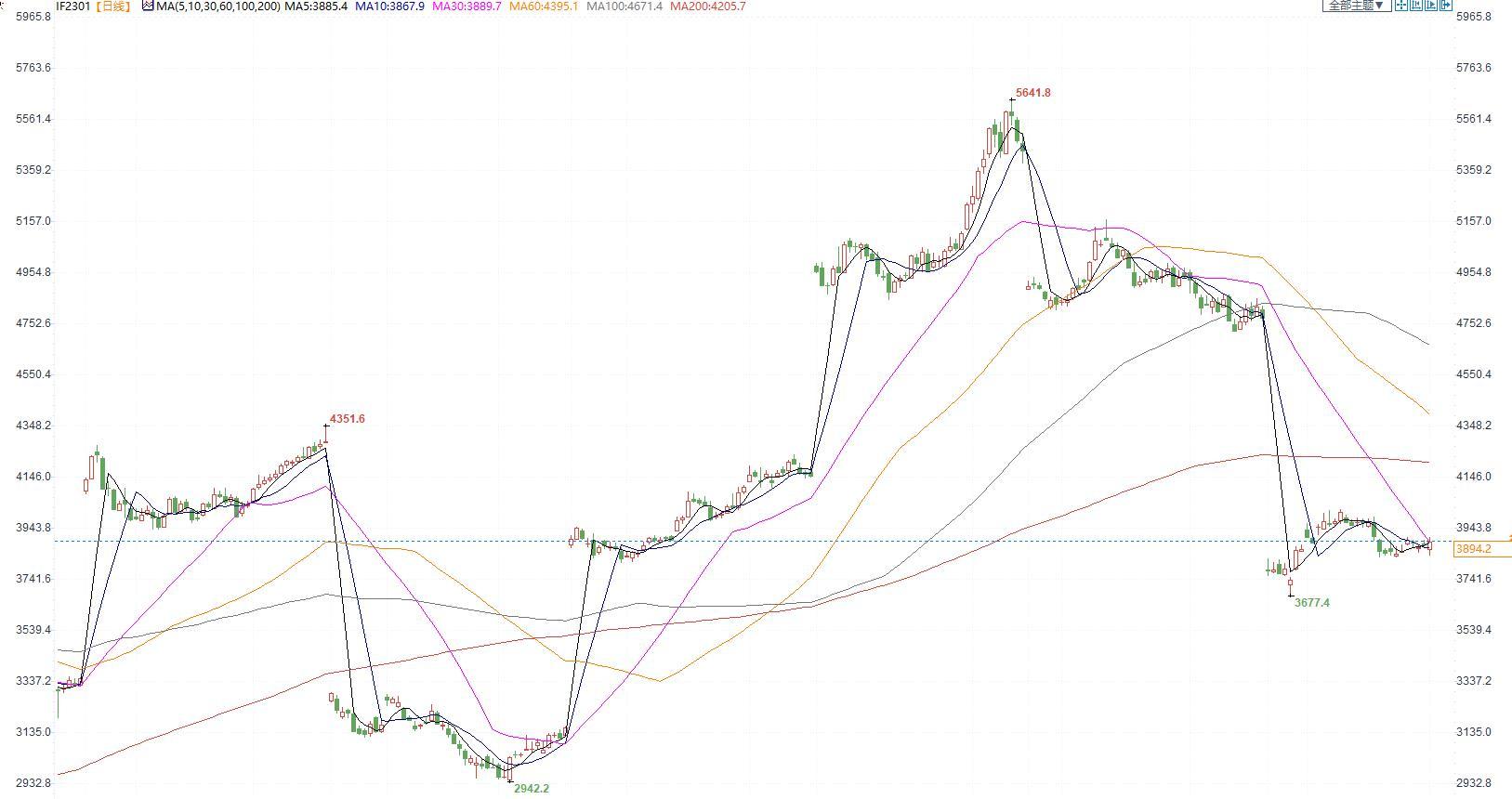 【今日涨跌】四大期指涨跌互现。IH2301收盘价为2648.6,收跌0.08%;IF2301收盘价为3894.2,收涨0.21%;IC2301收盘价为5958.8,收涨1.43%;IM2301收盘价为6420.0,收涨2.18%。