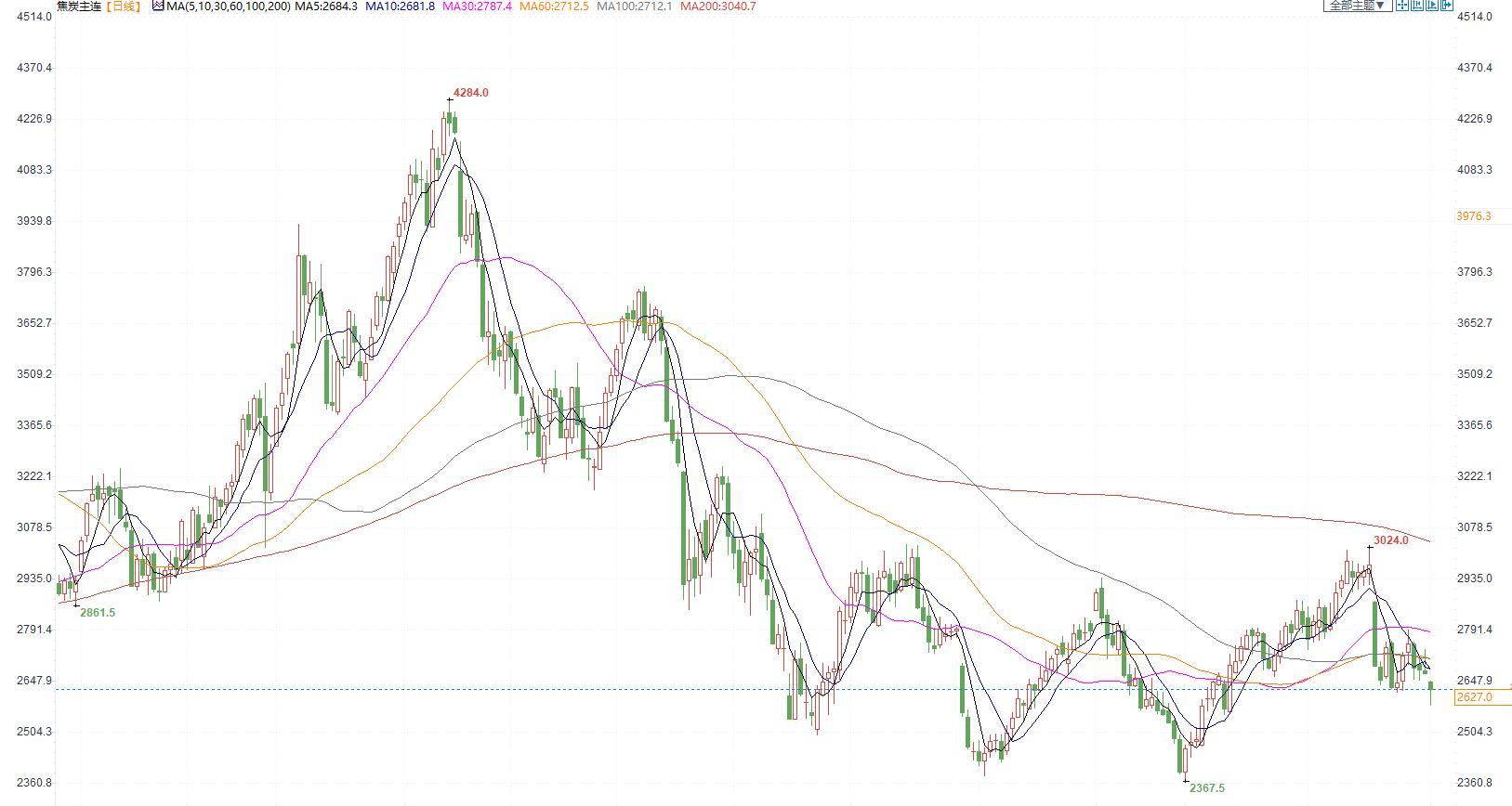 价格:今日05合约收于2627,2023年开盘第一天跳空低开尾盘收复部分失地,港口准一资源级仓单成本2960元/吨,元旦假期焦炭市场全面迎来第一轮降价,降幅为100-110元/吨