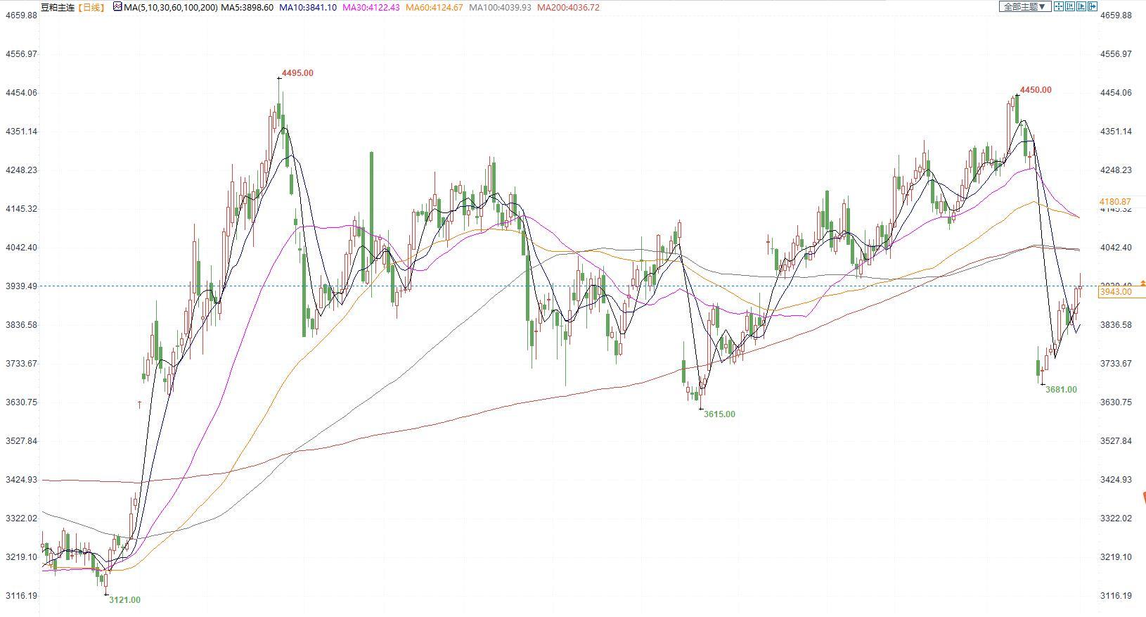 豆粕2305合约日内涨1.15%,收盘价3943元/吨,现货张家港43%蛋白豆粕4670元/吨