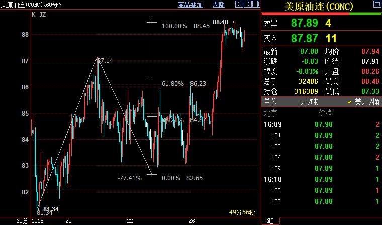 北京时间16:11,NYMEX原油期货下跌0.02%至87.89美元/桶;ICE布伦特原油期货上浮0.06%至93.85美元/桶。