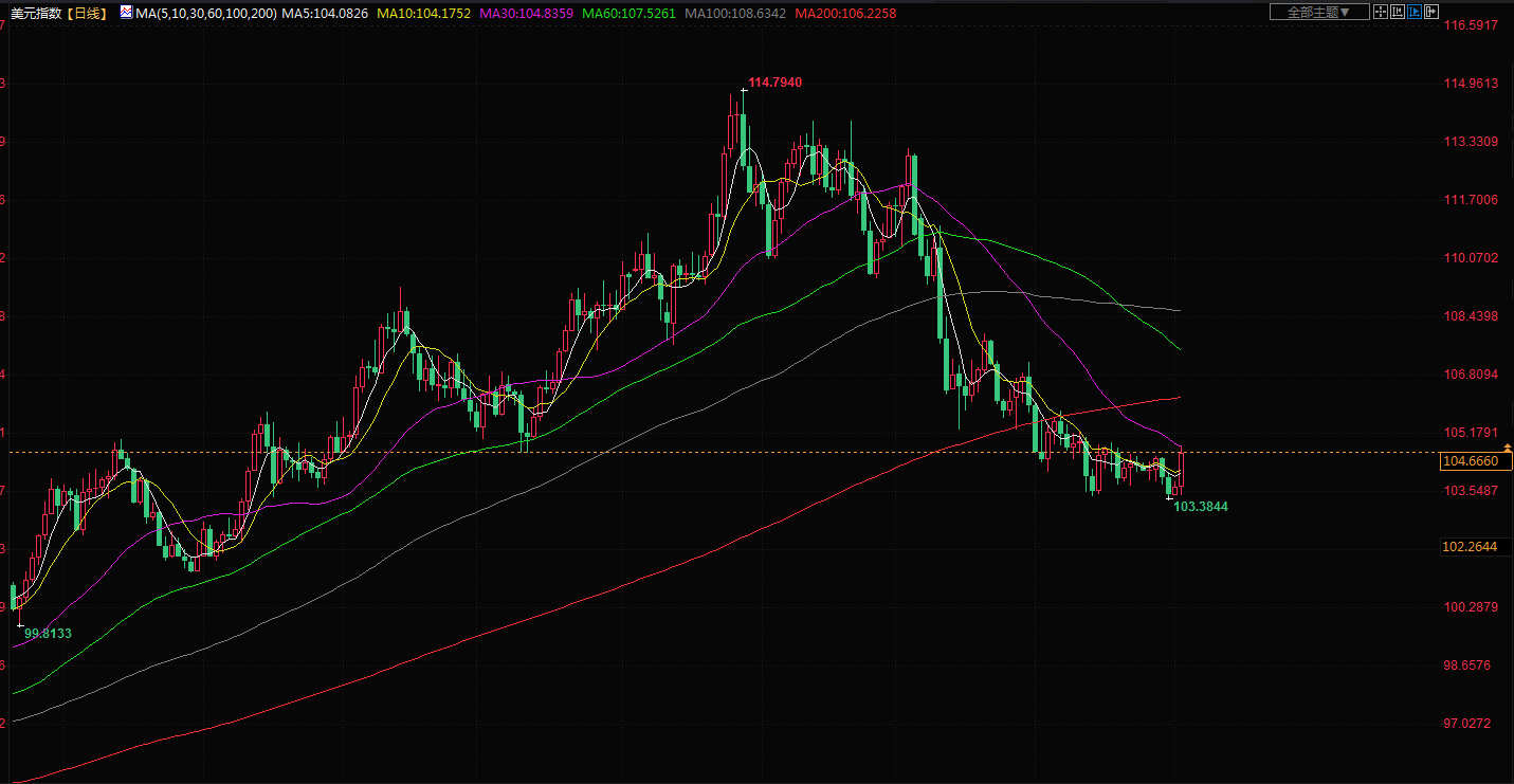 汇通财经APP讯——北京时间周三(1月4日),美元交投于104.67附近,美元周二美跳涨,欧元因通胀缓和下跌,美联储将于周四发布12月会议记录,金价在2023年开局触及逾六个月最高,指标美债收益率下降,投资者评估美联储进一步加息的前景;油价在震荡交投中急挫近4%,受累于需求数据疲软、经济前景黯淡和美元走强。