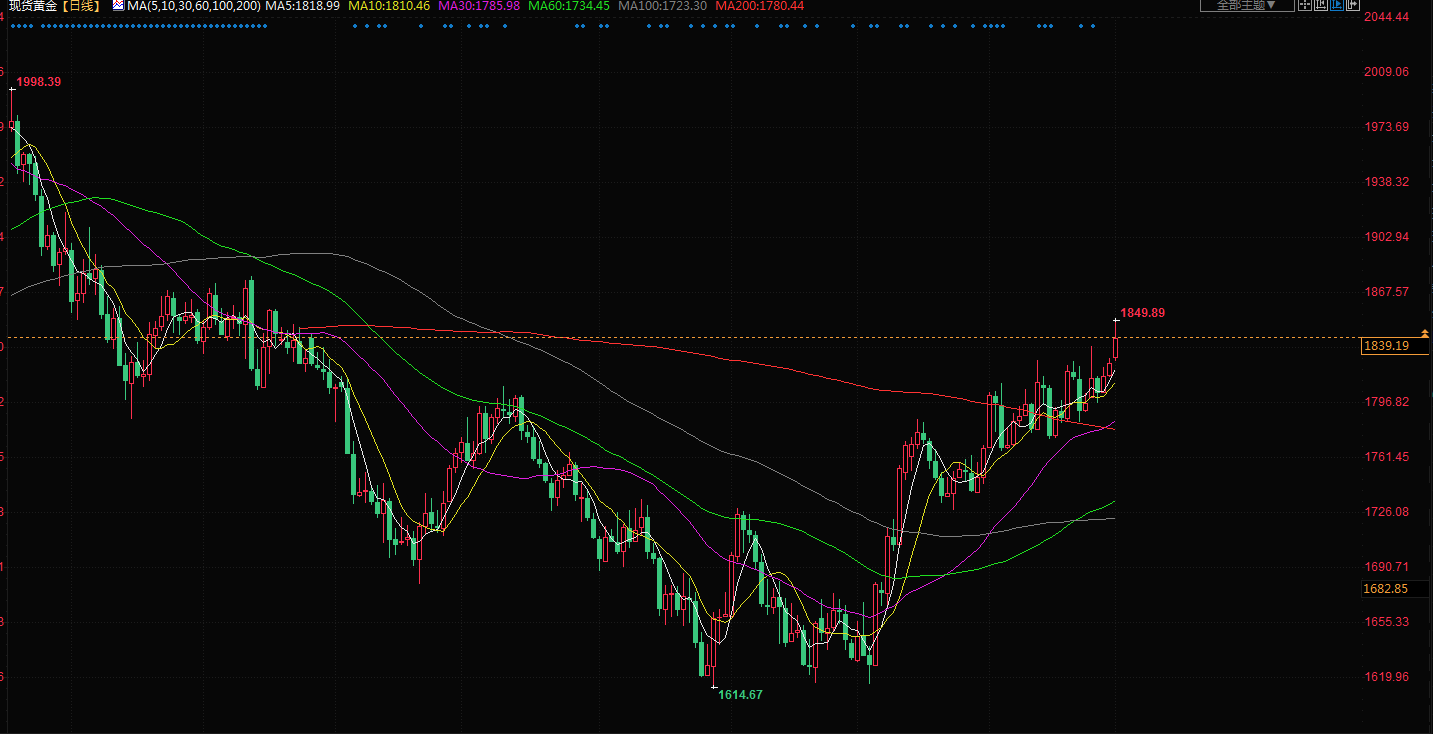 现货金上涨0.8%,至每盎司1838.56美元,稍早触及6月17日以来最高的1849.89美元。 现货金在2022年交投震荡,但年末较年初基本持平。