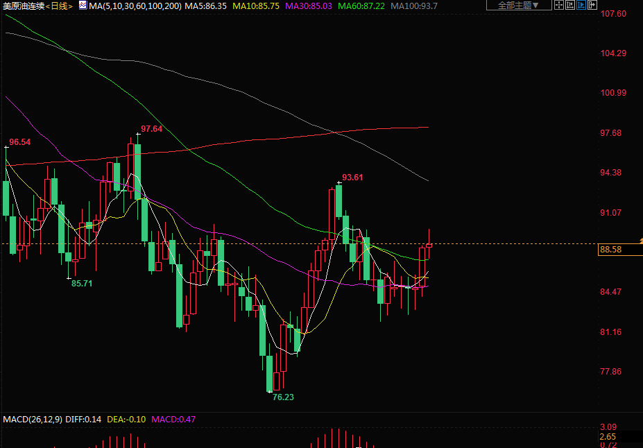 商品收盘情况:布伦特原油期货结算价上涨1.3%,报每桶96.96美元,而美国原油期货结算价上涨1.3%,报每桶89.08美元。美国期金结算价报每盎司1665.60美元,下跌0.2%。