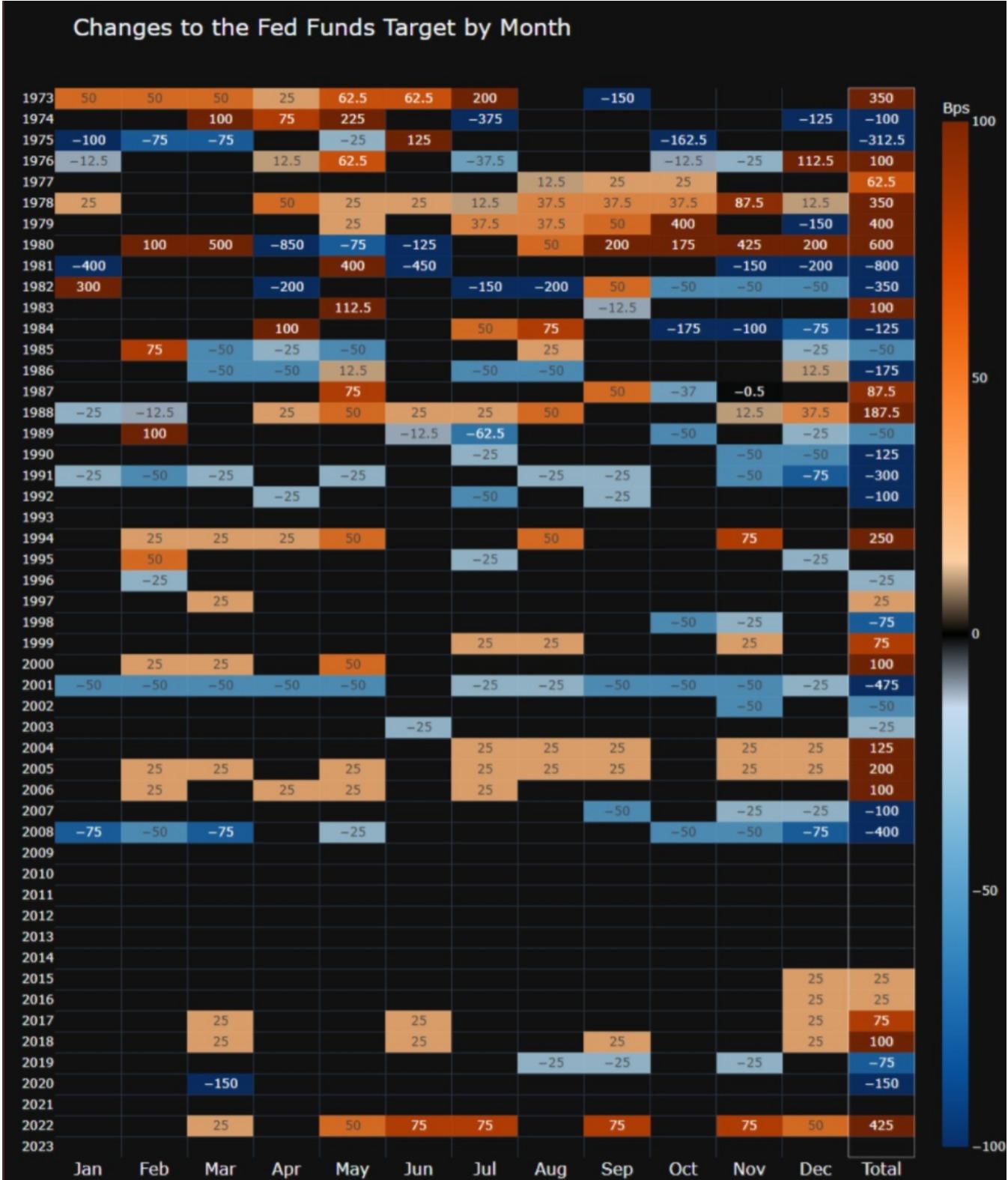 颇为有意思的是,22年前那个比昨日更为强劲的美债年度开局之日,正好对应的是格林斯潘(Alan Greenspan)领导的美联储大举降息的年份——2001年美联储累计降息了475个基点,全年有11个月宣布了降息。