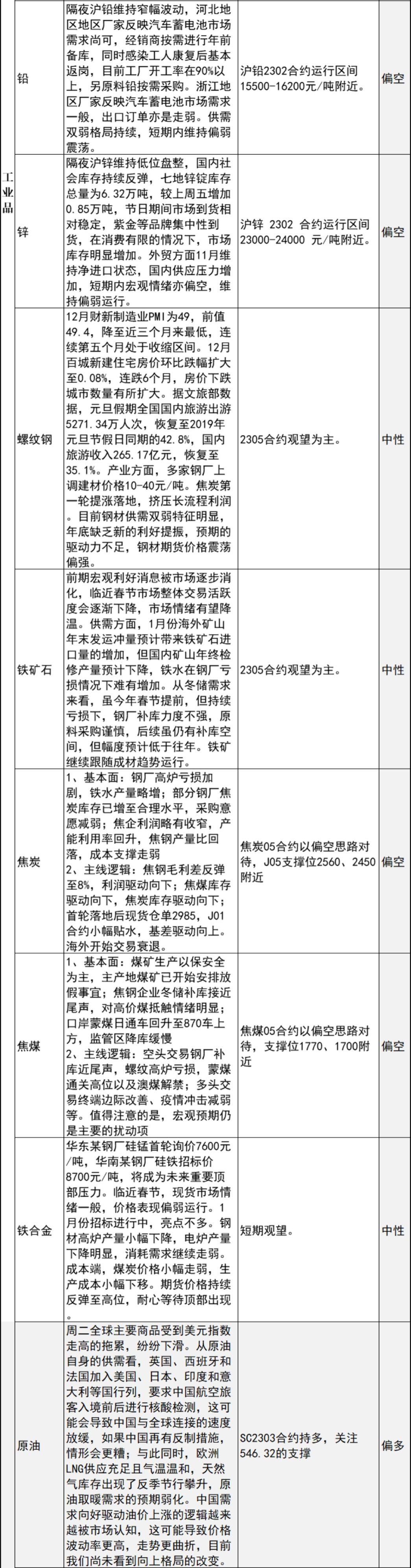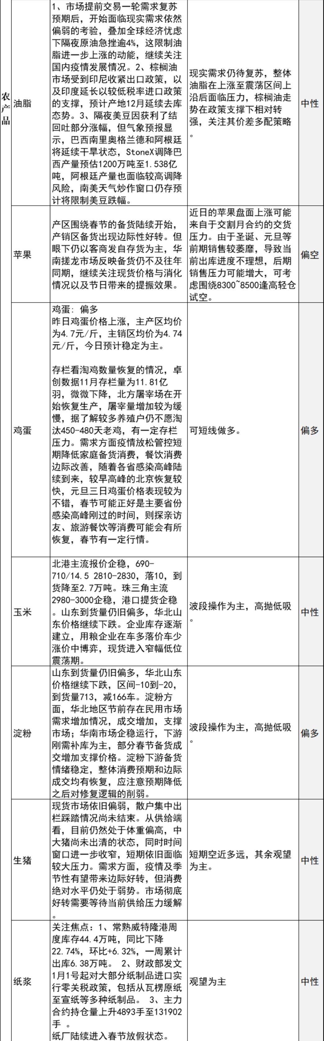 钢矿:钢材供需双弱特征明显,年底缺乏新的利好提振,预期的驱动力不足,钢材期货价格震荡偏强;铁矿继续跟随成材趋势运行。