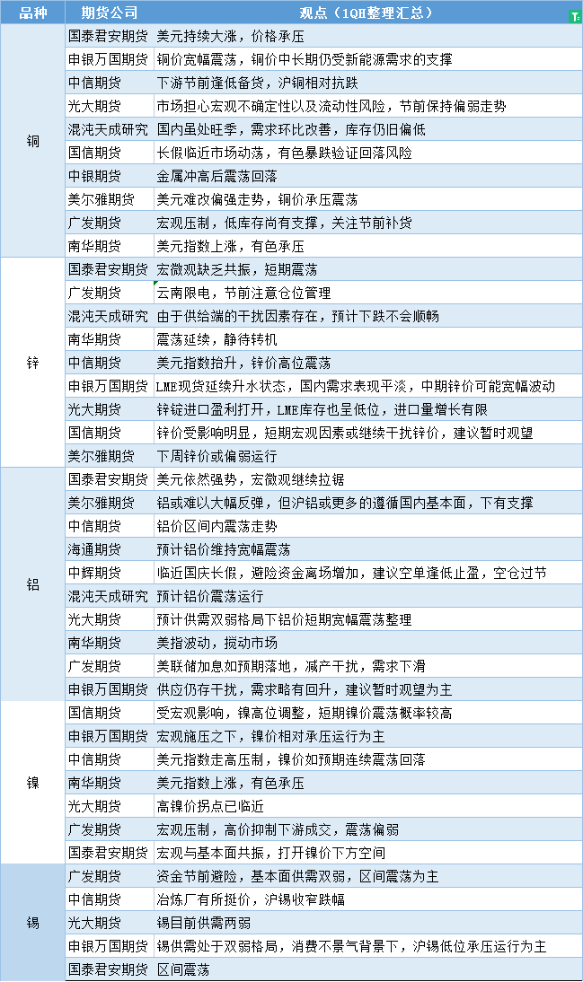 期货公司观点汇总一张图:9月27日有色系(铜、锌、铝、镍、锡等)
