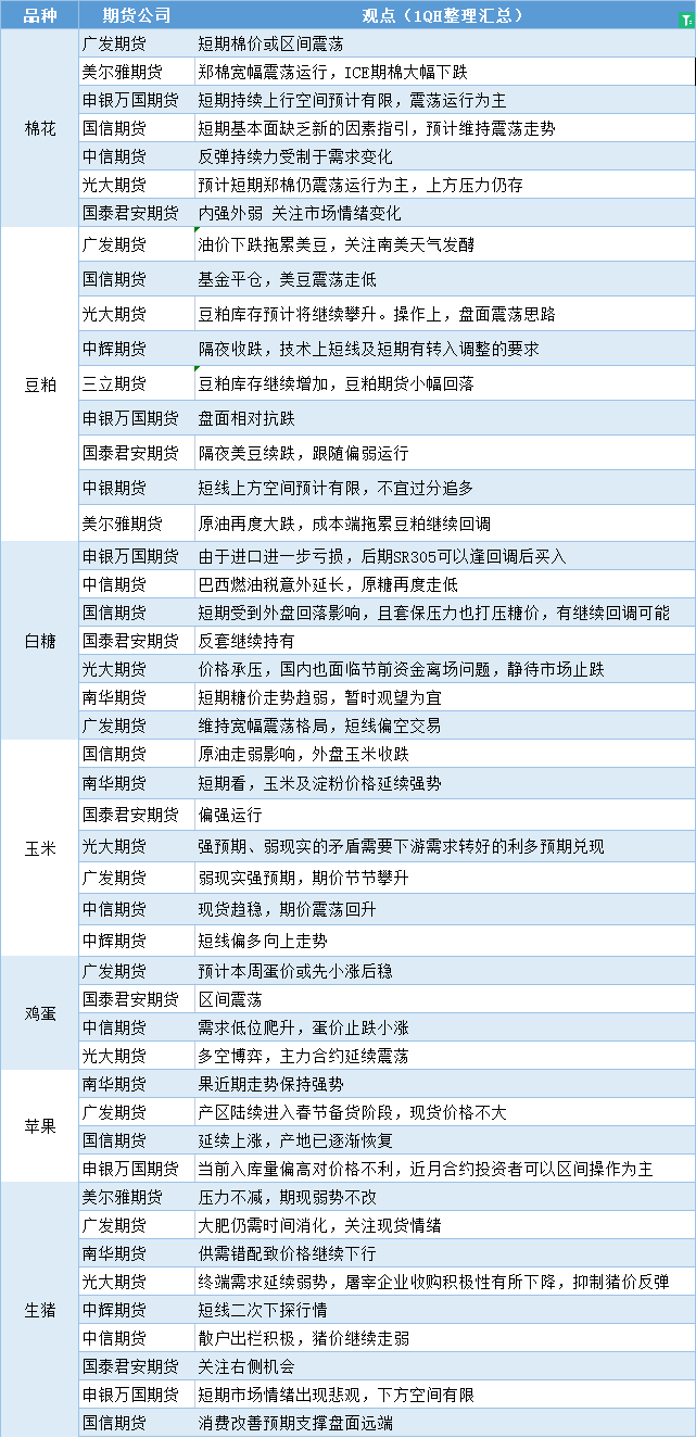 期货公司观点汇总一张图:1月5日农产品(棉花、豆粕、白糖、玉米、鸡蛋、生猪等)