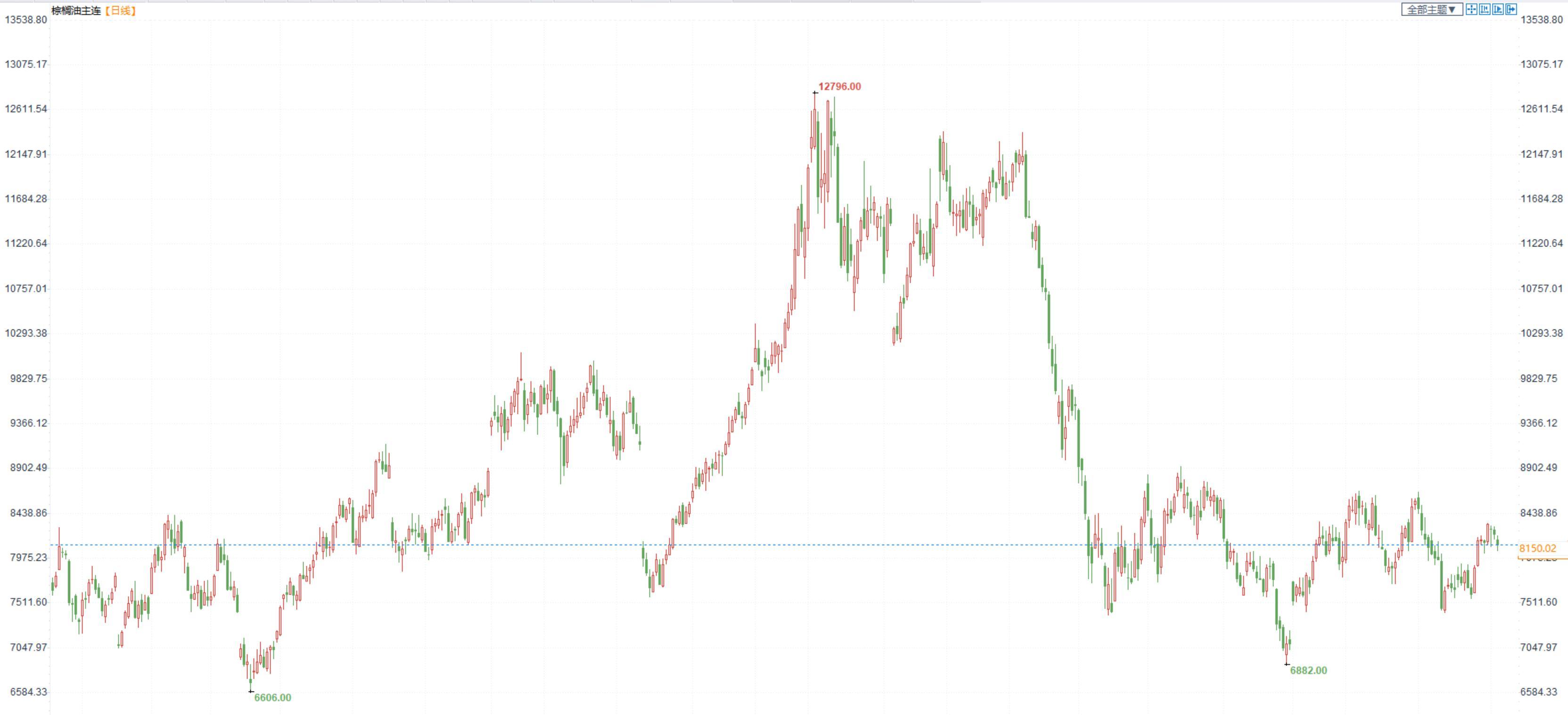 棕榈油2305合约日内跌1.41%,收盘8120元/吨;广州市场棕榈油7920元/吨。