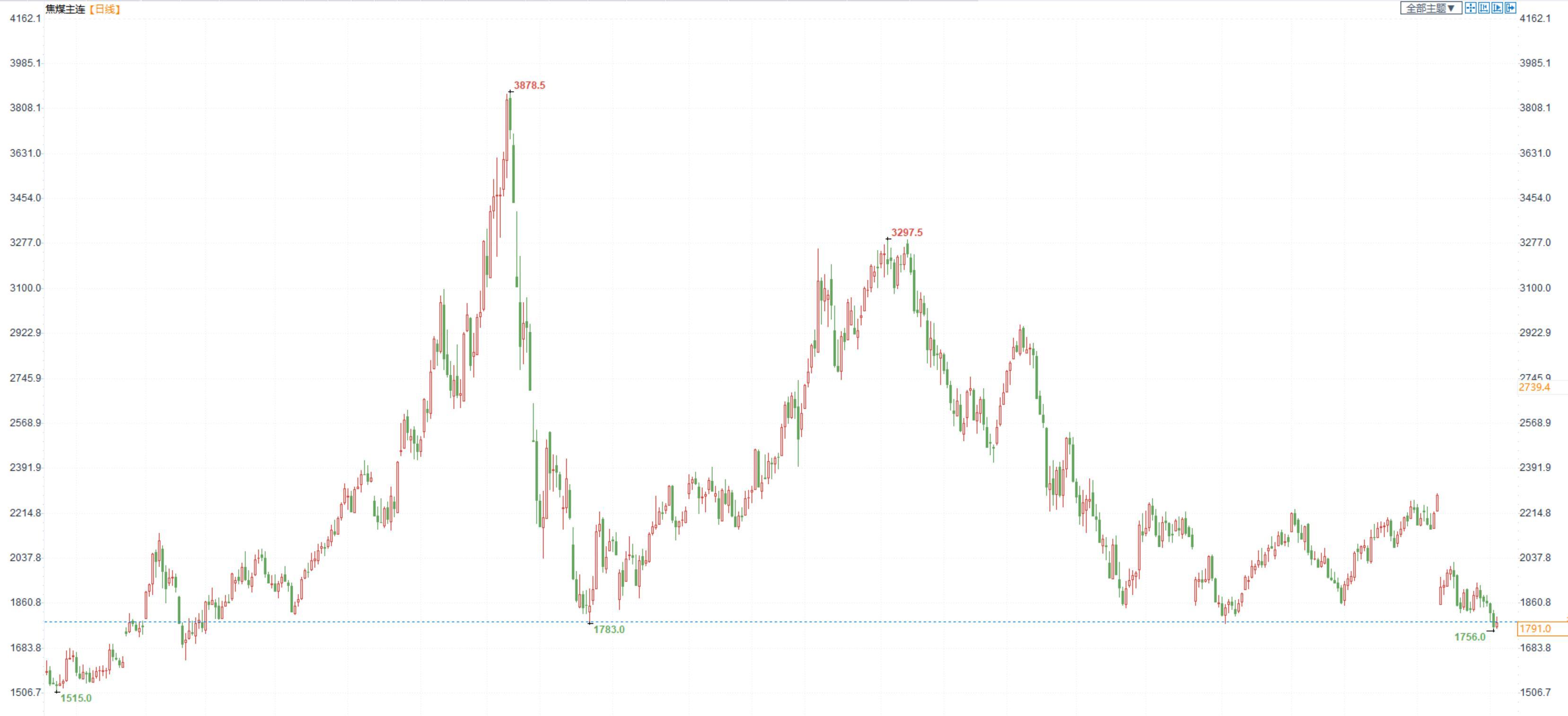 价格:今日05合约收于1791,山西中硫主焦仓单成本2175元/吨。盘面大幅下跌,市场悲观情绪开始蔓延。