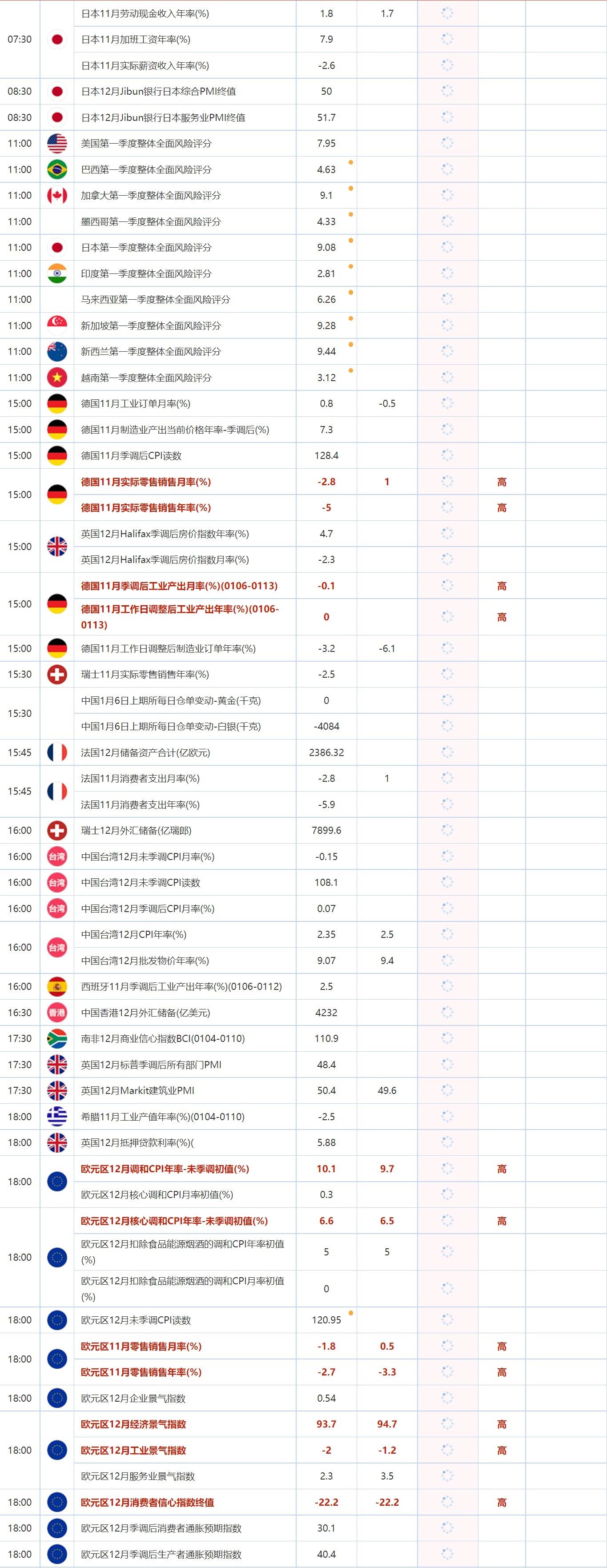 后续及时更新的财历数据请关注:【汇通网1月6日财经日历】