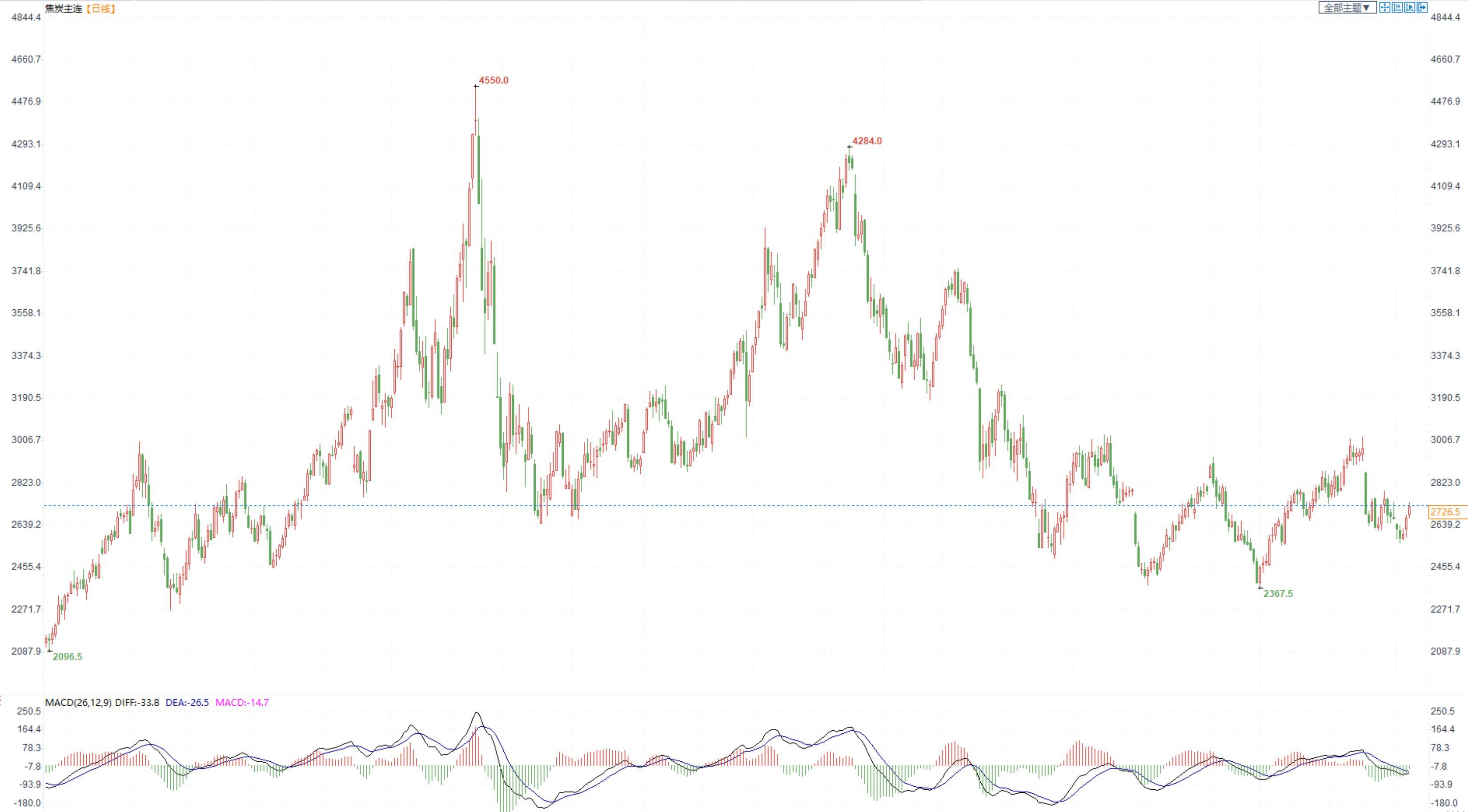 价格:今日05合约反弹,涨3.47%,收于2726.5,港口准一级焦炭仓单成本2940元/吨,钢厂对焦炭进行第二轮提降,若落地,山西产地焦炭2460元/吨。