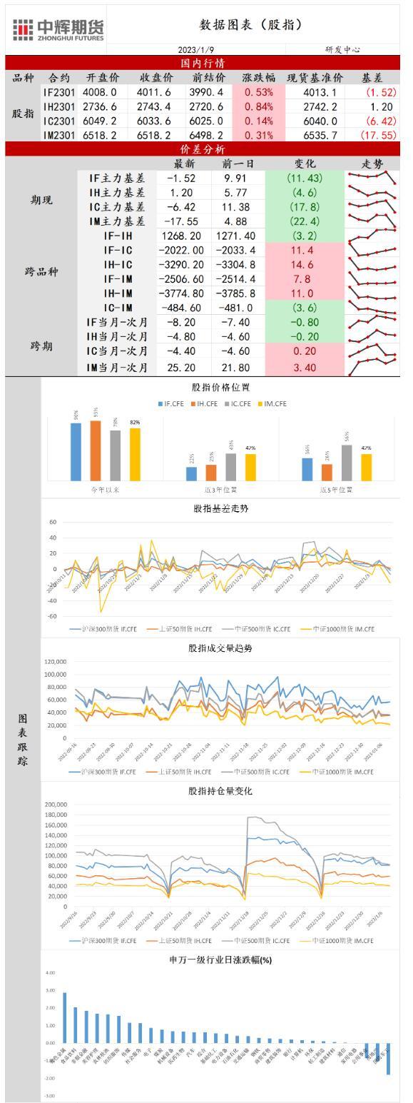 中辉期货股指日报20230109:外资延续净流入,股指中枢上移