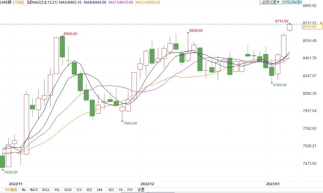 目前,铜价仍处于横盘区间内。由于该行业面临一系列问题,2022年是铜价动荡的一年。欧洲的供应短缺、铜生产大国秘鲁和智利政治动荡、亚洲疫情,美国高通胀也是导致铜价波动的原因。