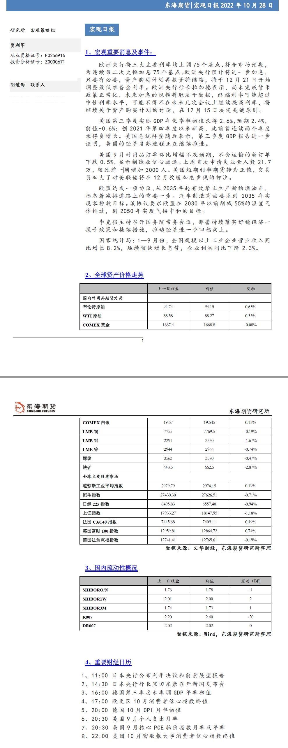 【东海期货10月28日宏观日报】:美国三季度GDP超出市场预期,美元短期大幅反弹
