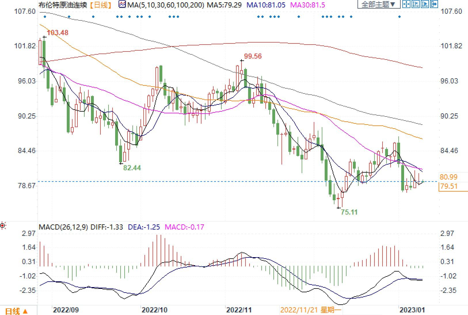 北京时间1月11日14:24,布伦特原油连续报79.51美元/桶