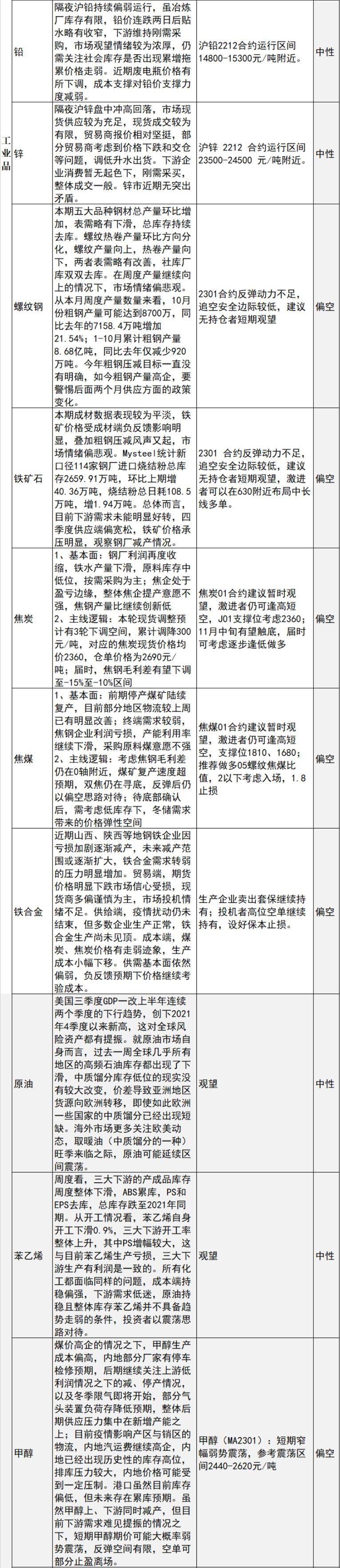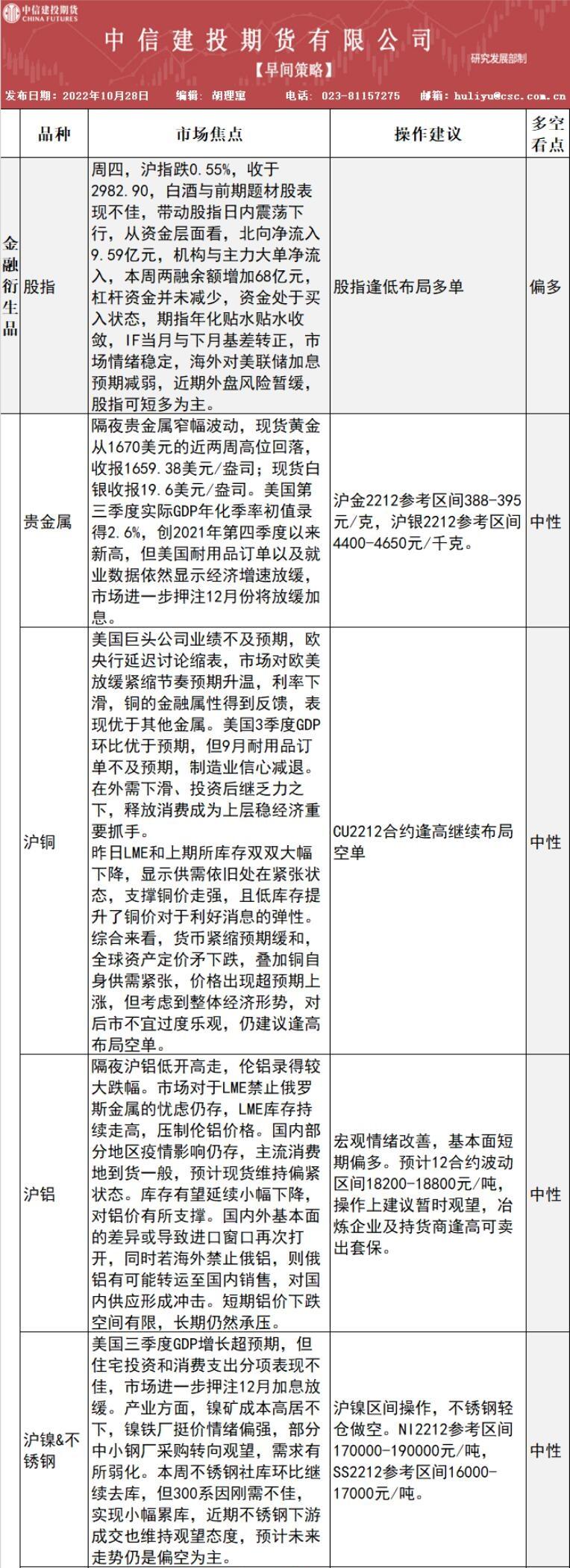 中信建投期货10月28日早间交易策略