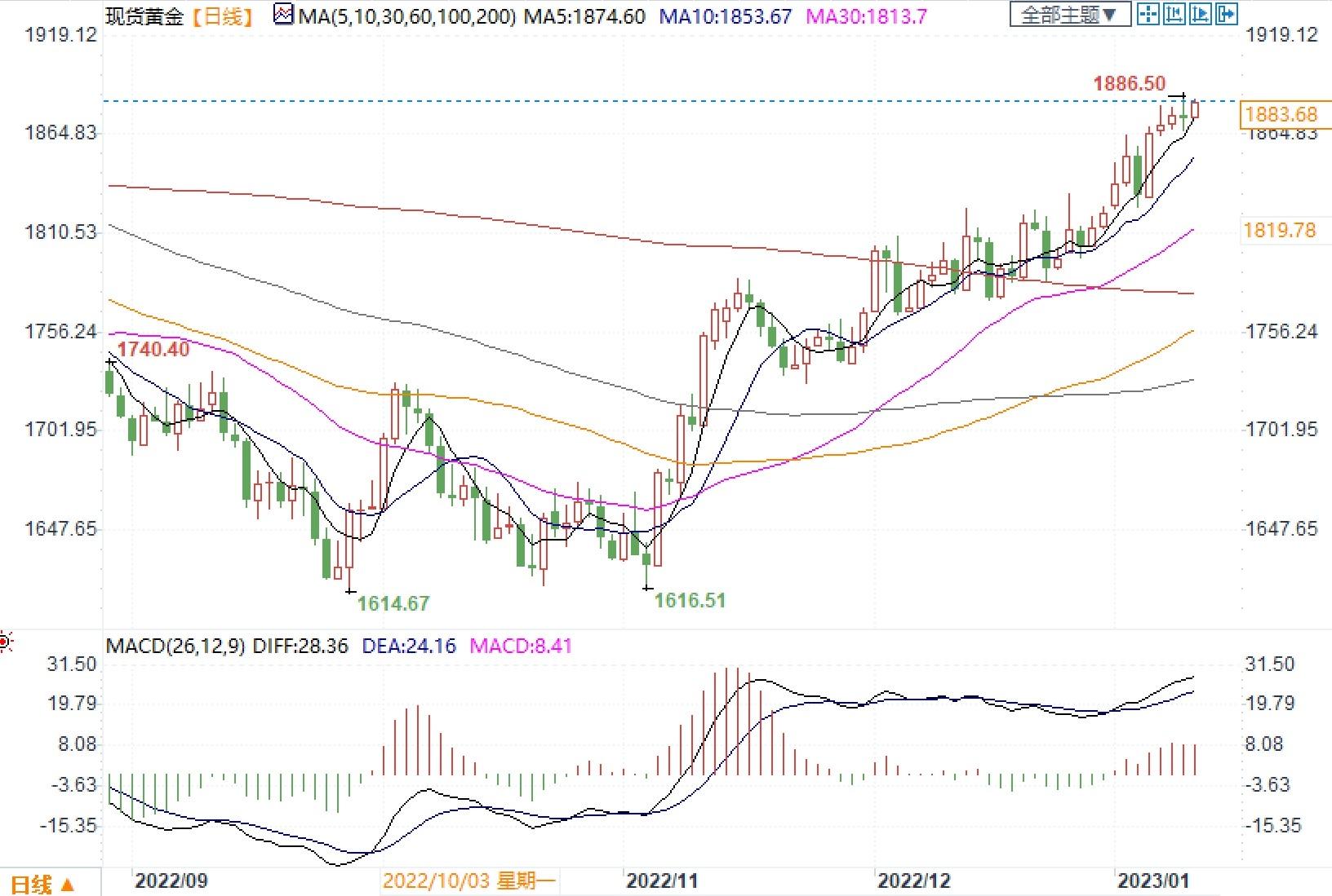 北京时间1月12日13:36,现货黄金报1884.45美元/盎司