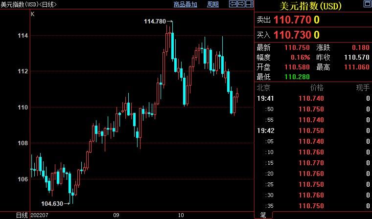 截至发稿,现货黄金下跌0.20%至1652.53美元/盎司;美元指数下跌0.84%至105.688,盘中创9月20日以来新低至109.527。