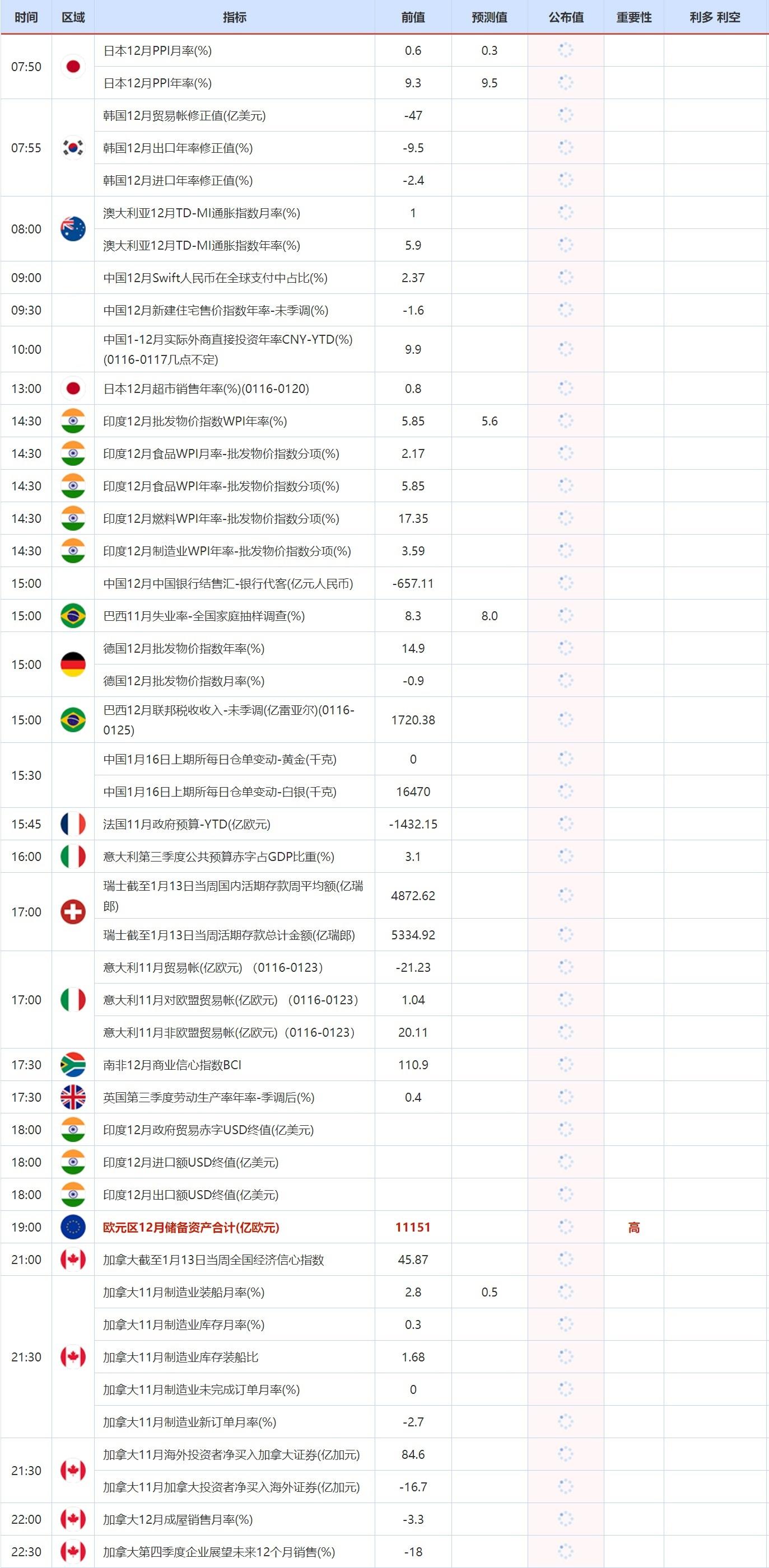 1月16日重点数据和大事件前瞻