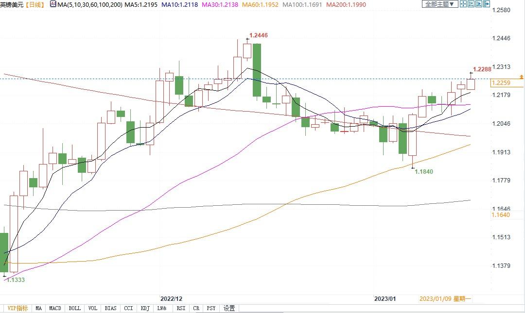 北京时间1月16日13:34,英镑兑美元报1.2259/61