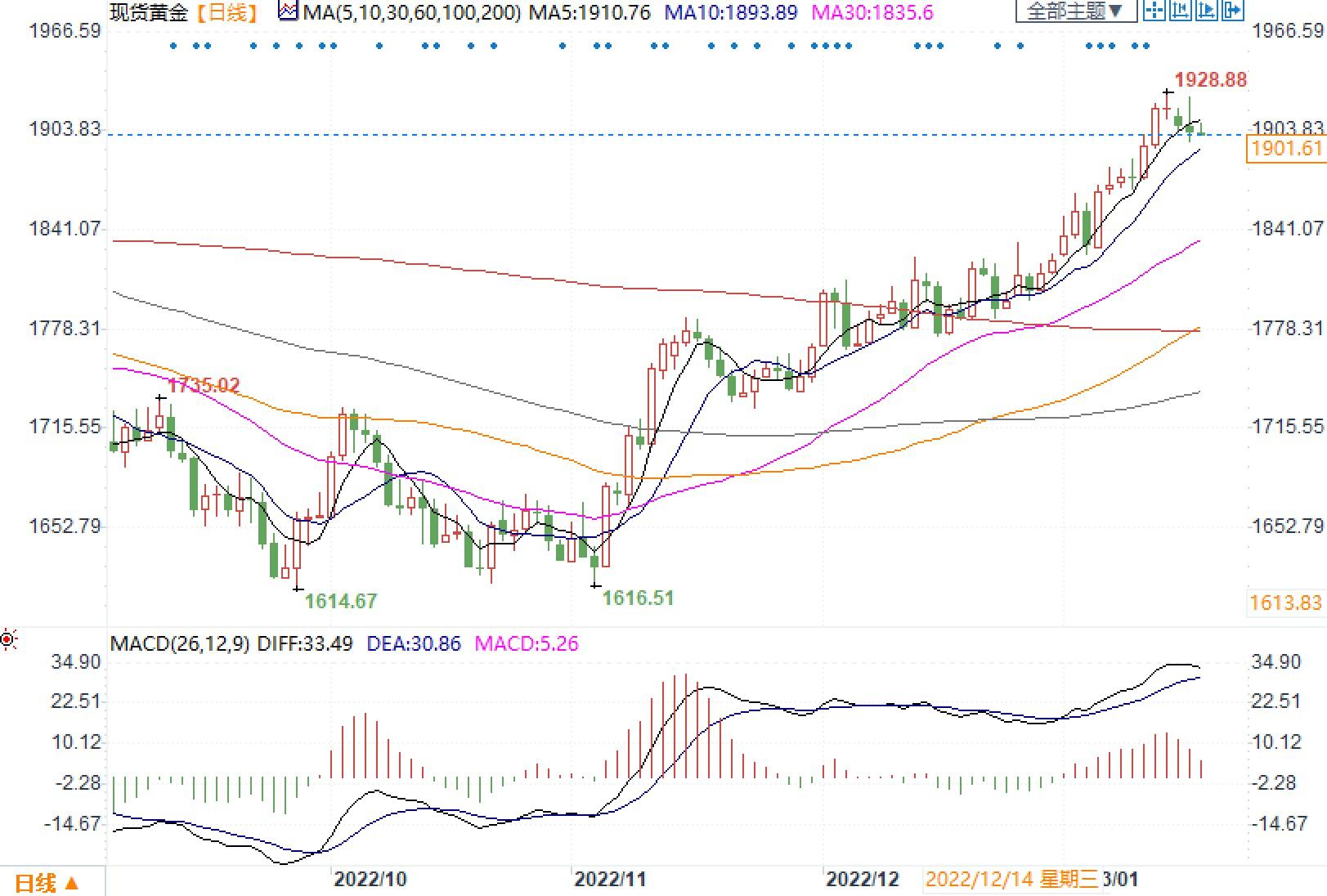 机构称随着2023年美联储转鸽,金价有望突破两千大关!