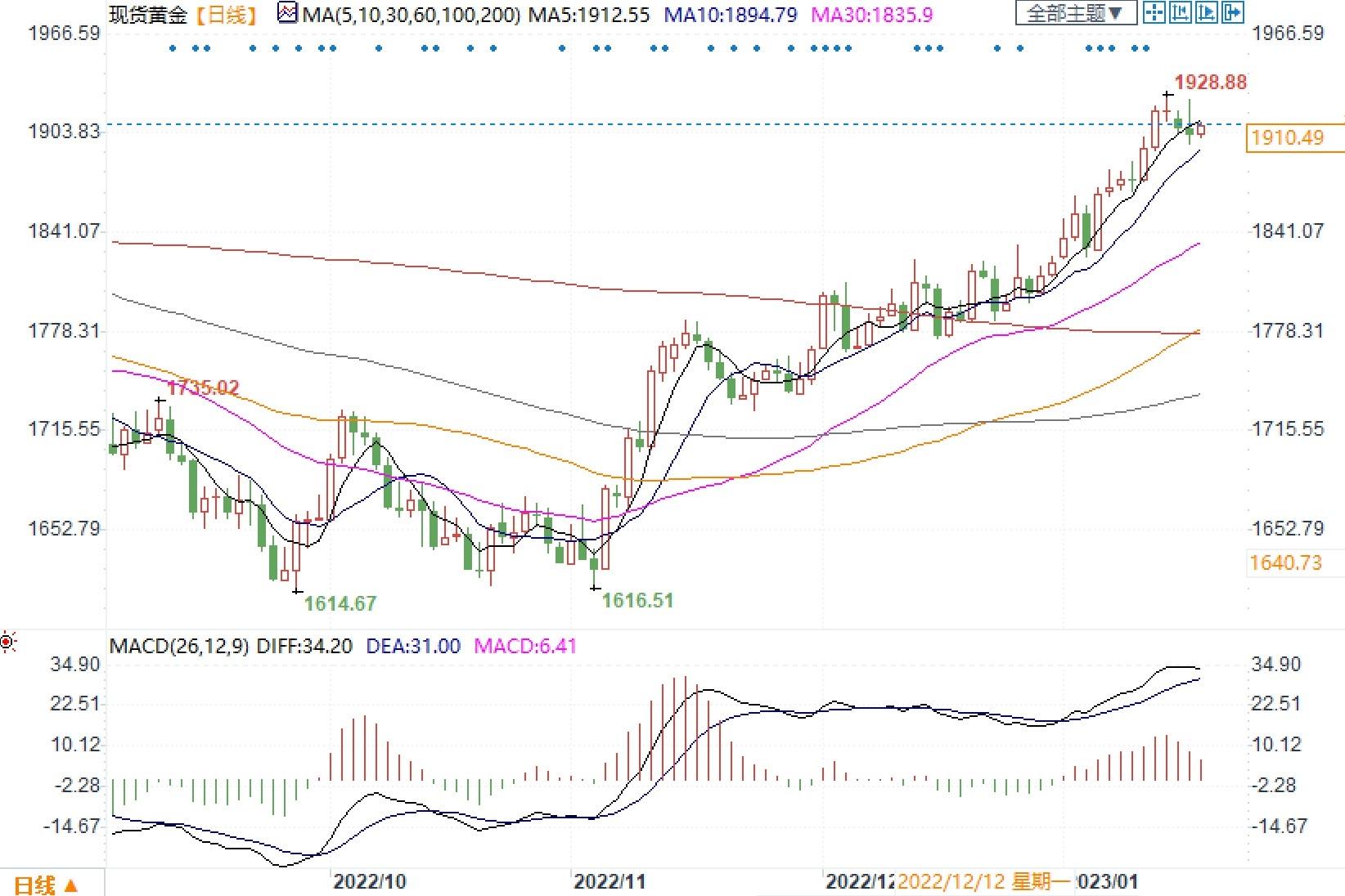 金价2023年迄今上涨了4.4%,目前接近每盎司1910美元。