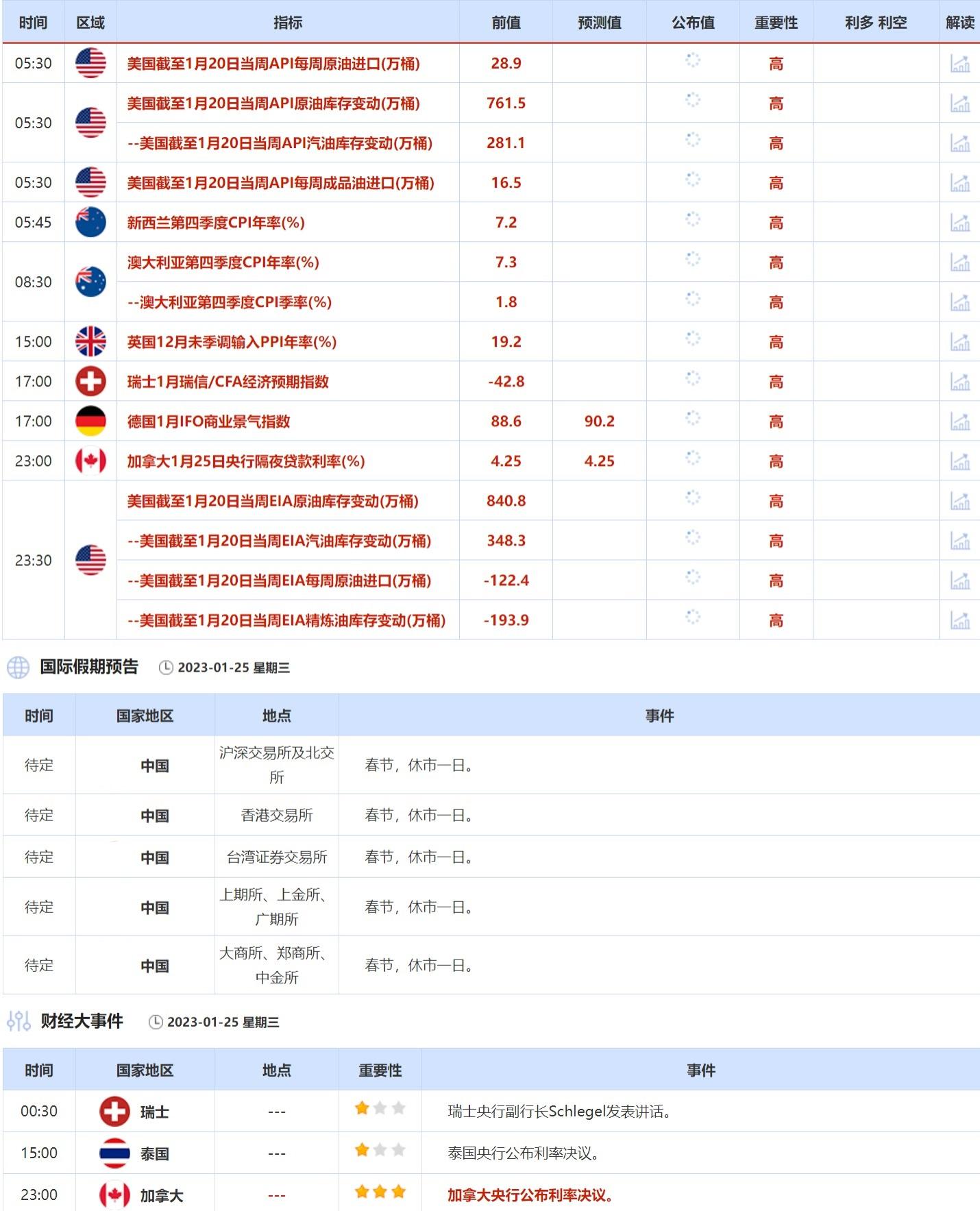 ③1月25日(周三)关键字:加拿大央行利率决议,美国API和EIA原油库存变动