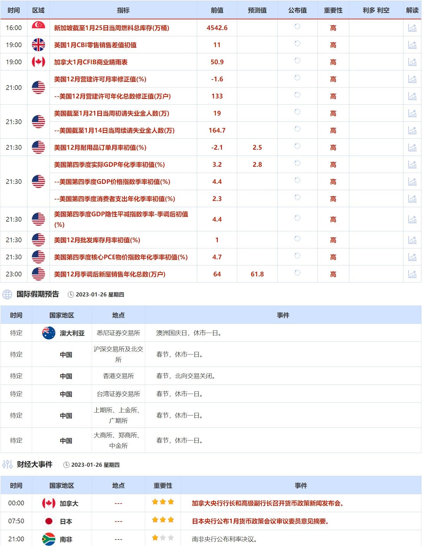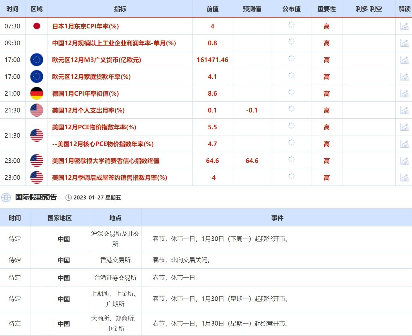 1月23日-1月27日当周重点数据和大事件前瞻