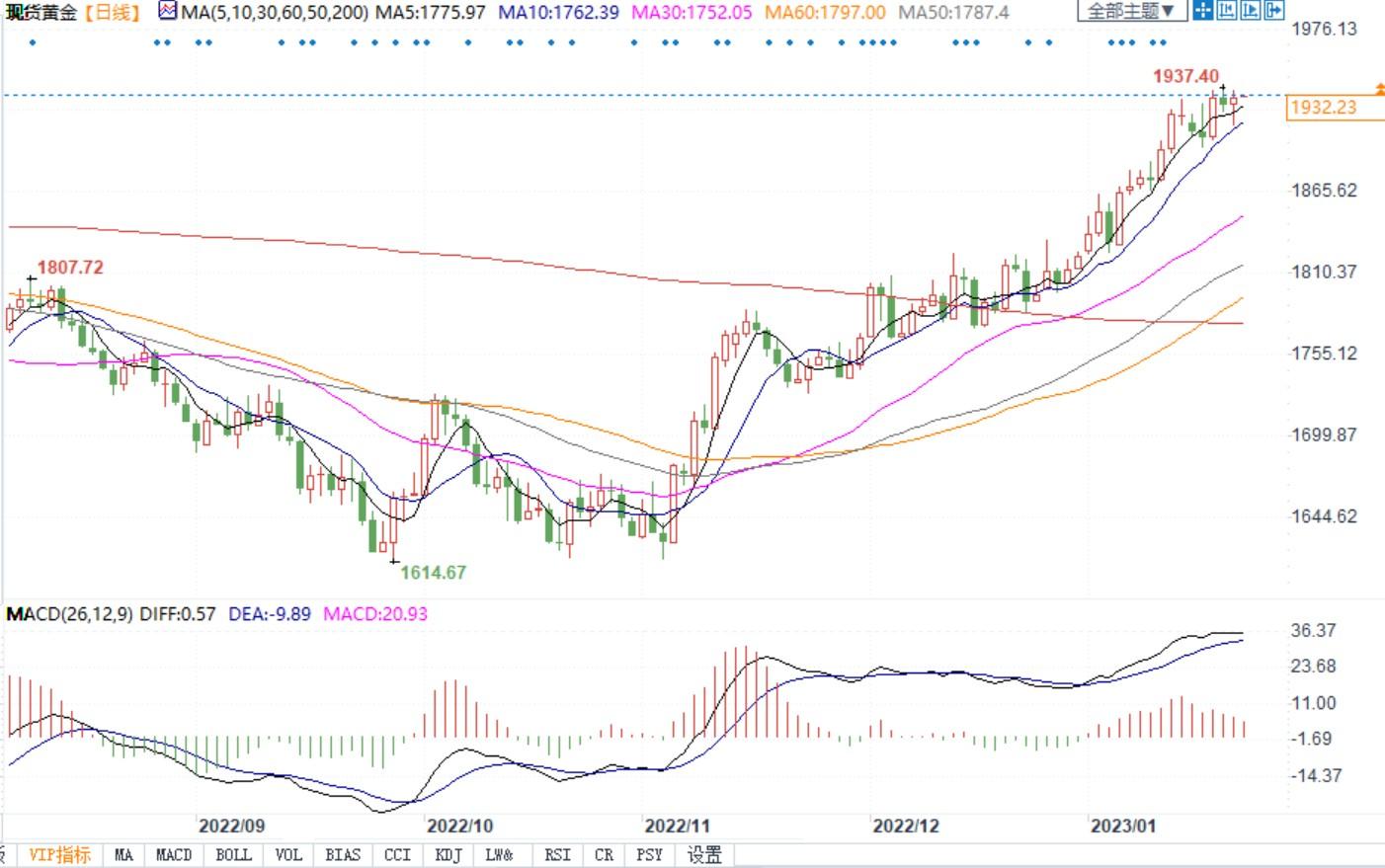 汇通财经APP讯——周二(1月24日)亚市盘初,现货黄金震荡微涨,目前交投于1932美元/盎司附近。周一现货金价维持窄幅震荡,多头在经历了五周的上升趋势后稍作喘息,收涨0.23%,报1930.92美元/盎司。