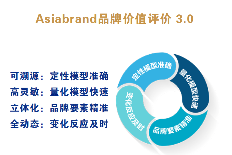 “2022亚洲品牌500强”榜单研发是基于从亚洲品牌研究院数据库中筛选出16000个创新型品牌,采用Asiabrand品牌价值评价 3.0“定性+定量”模型,通过对企业品牌资产的精确计量和品牌资产功效的相关分析,使得品牌价值计算结果更加贴近市场价值,为政府管理、投融资、企业资源配置和品牌管理都提供了科学、客观的参考依据。