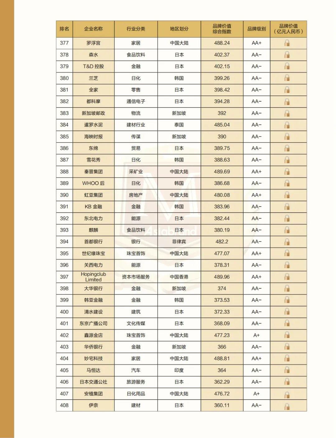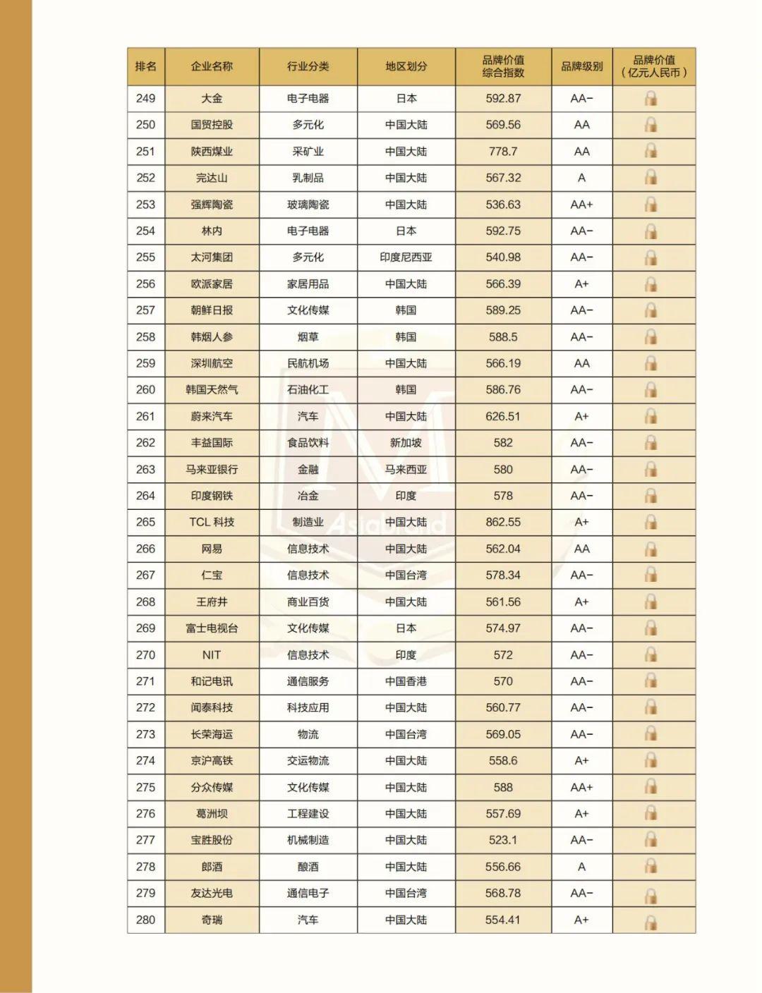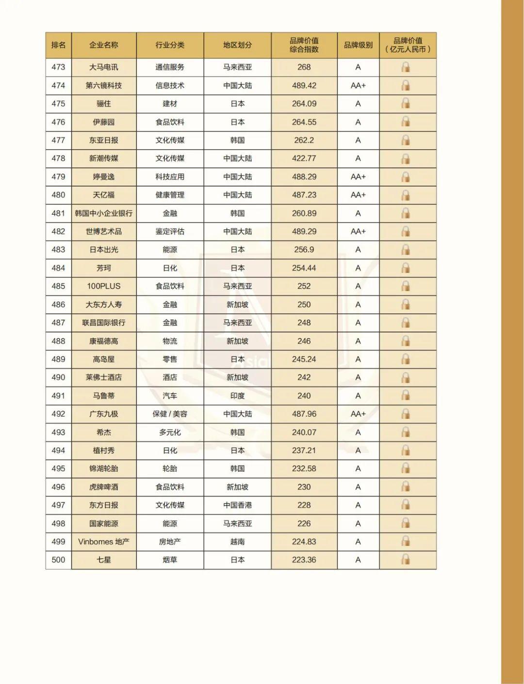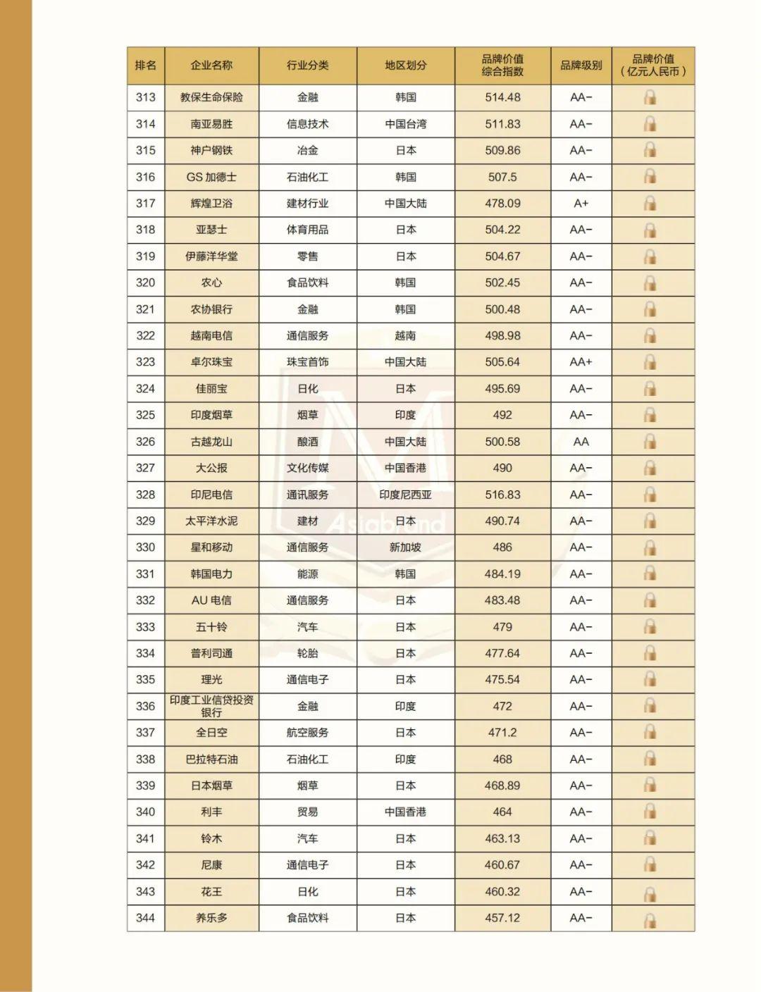 附:2022亚洲品牌500强名单