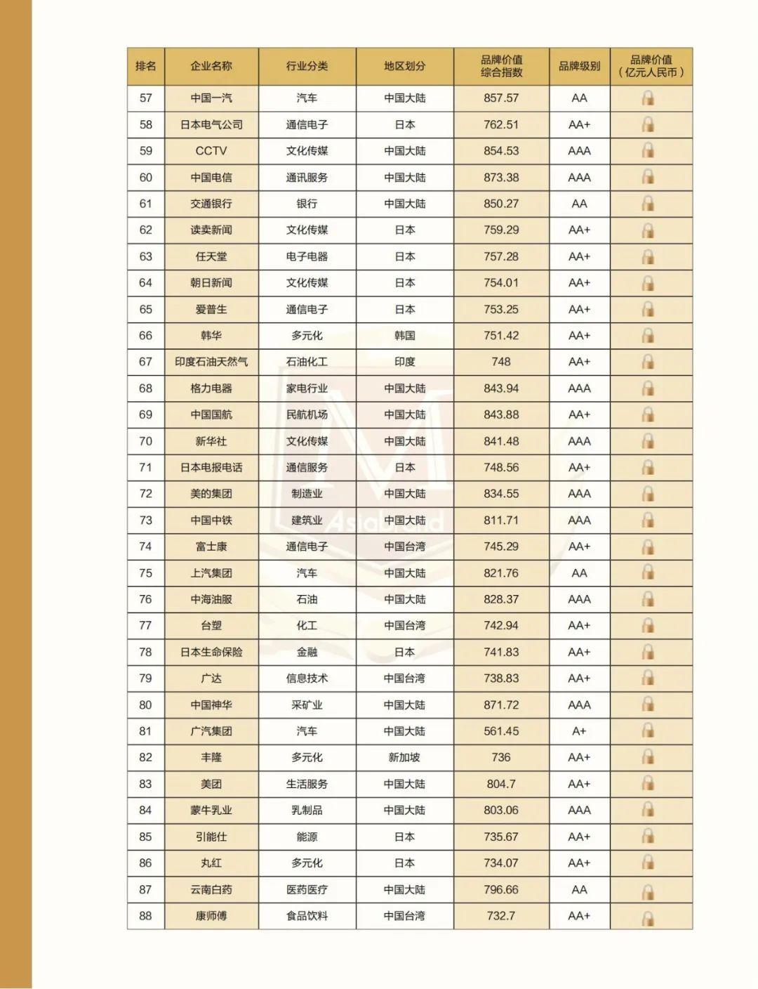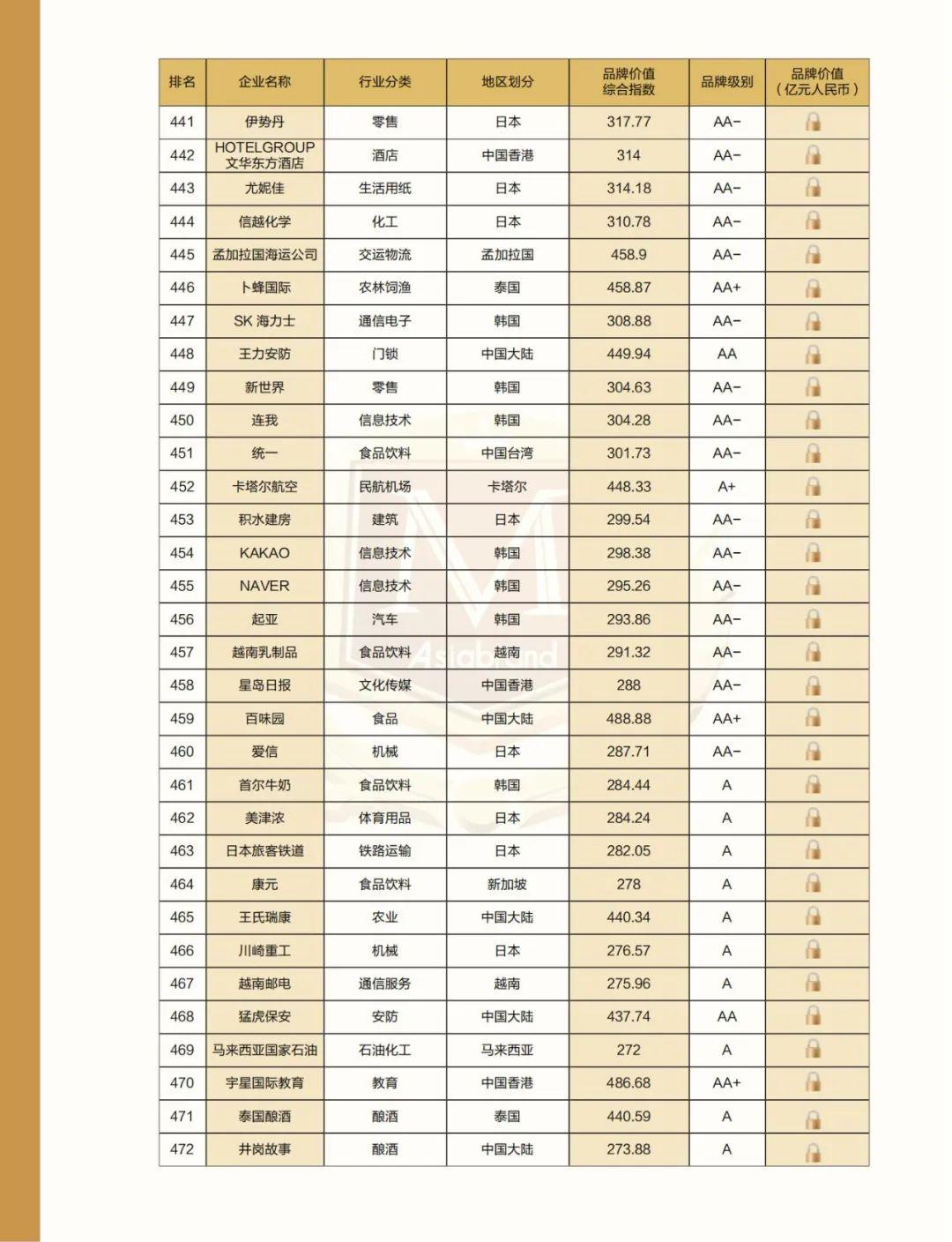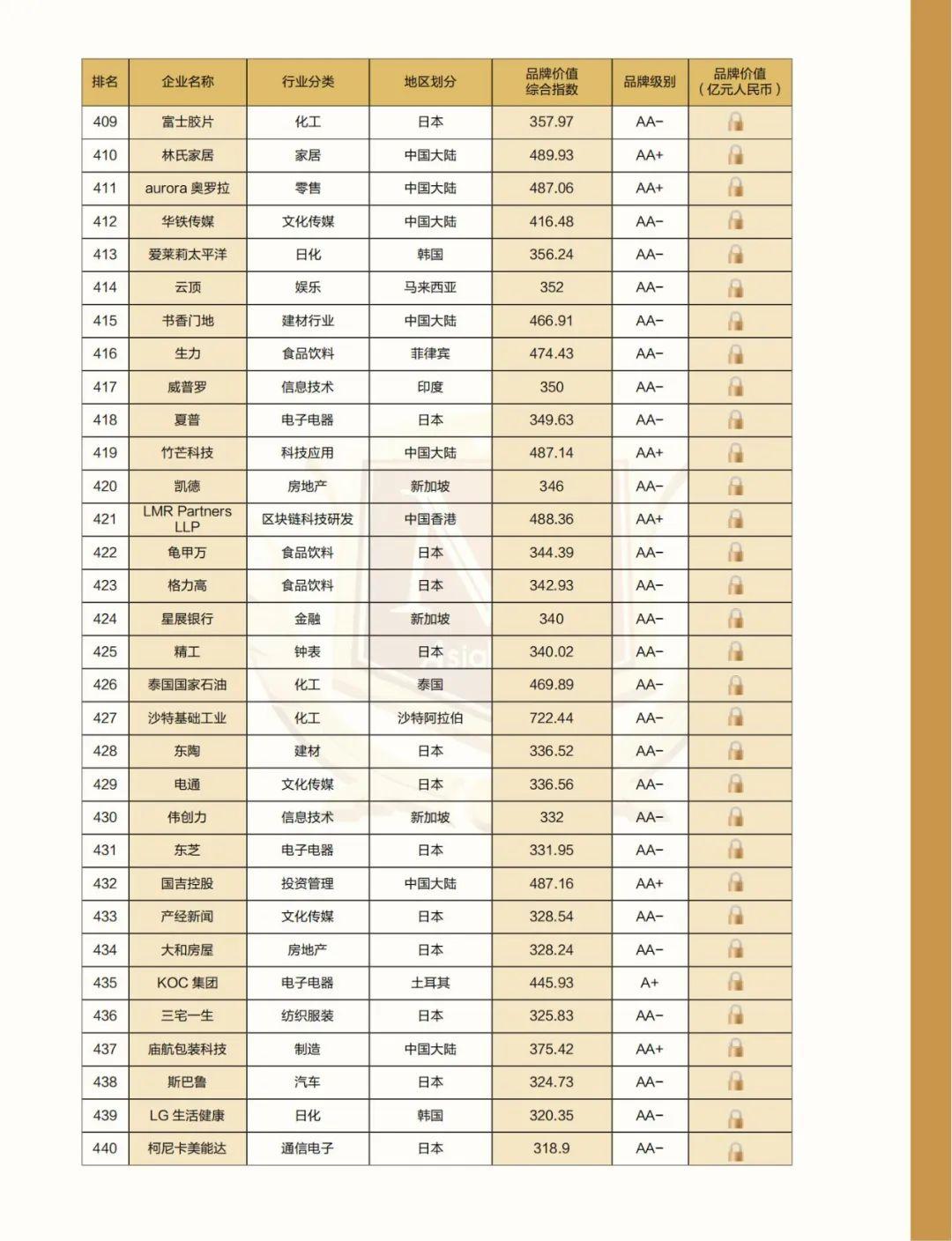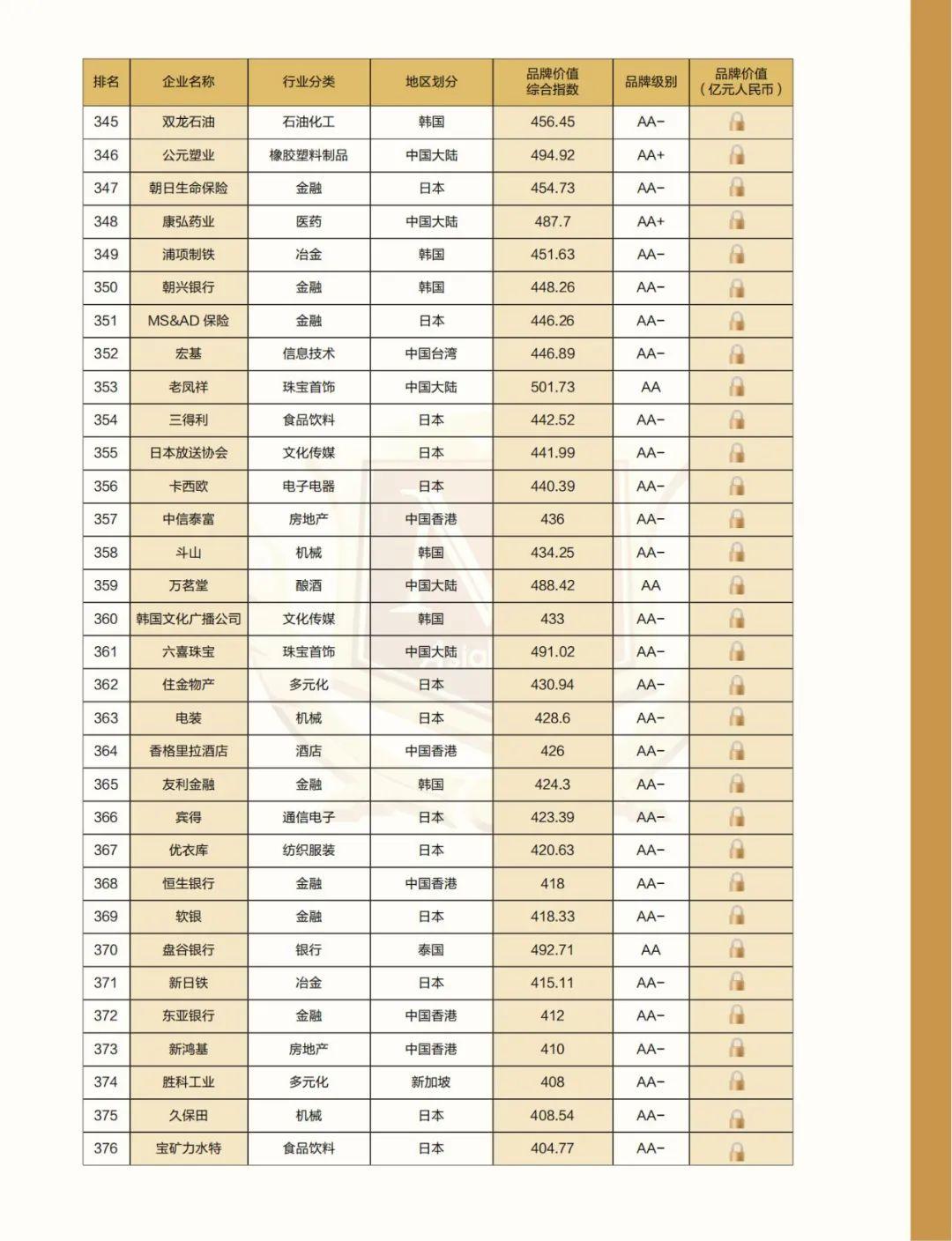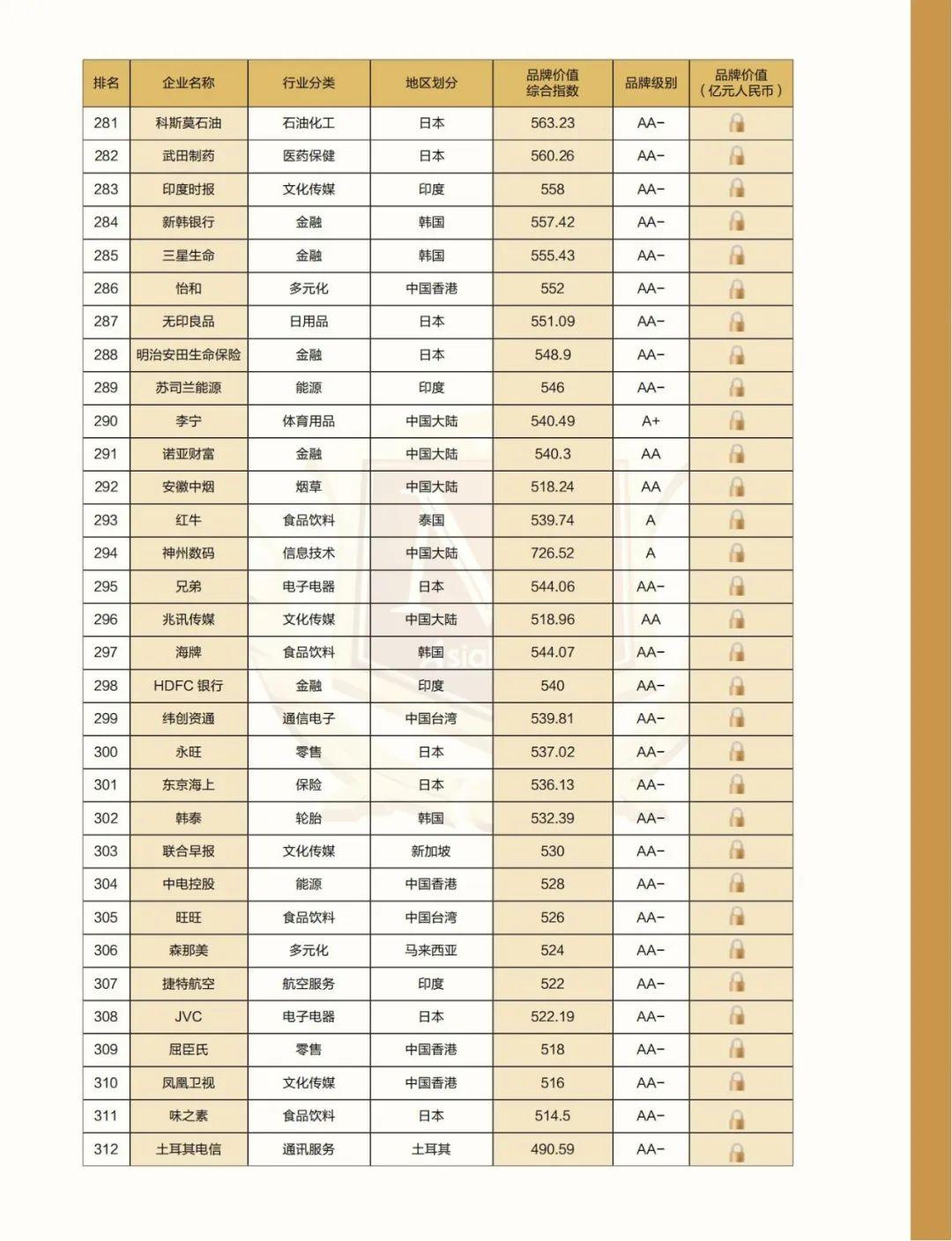 附:2022亚洲品牌500强名单