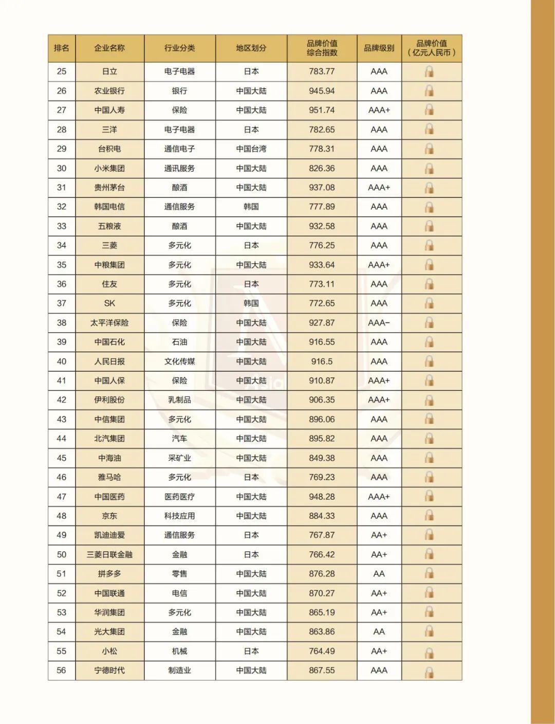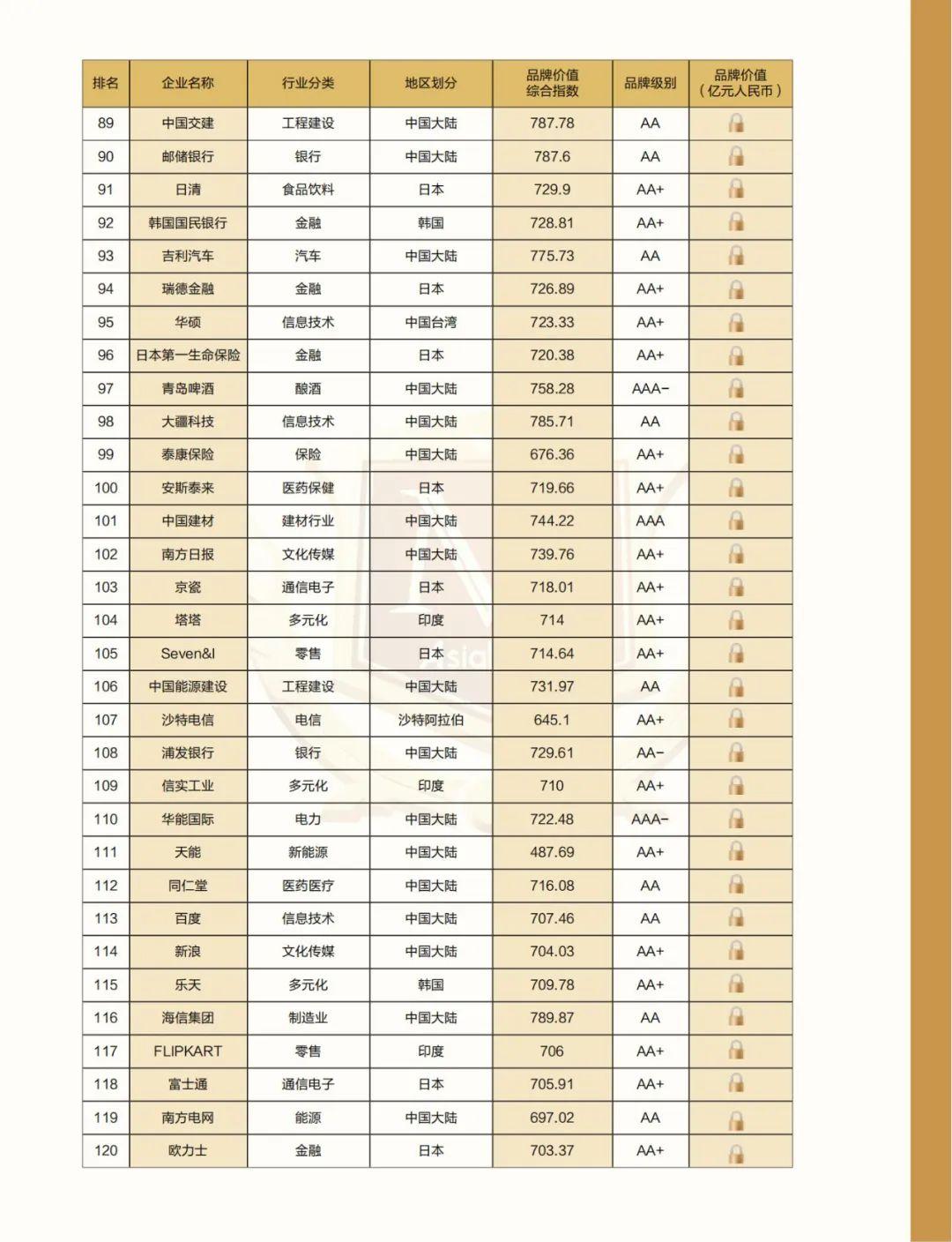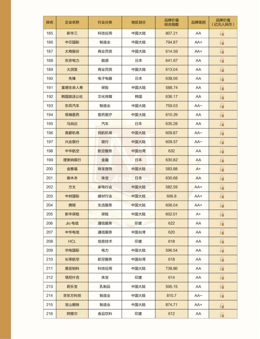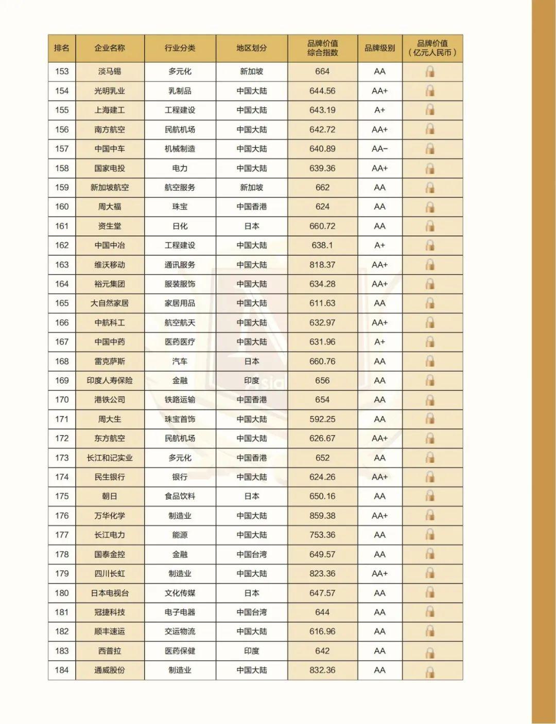 附:2022亚洲品牌500强名单