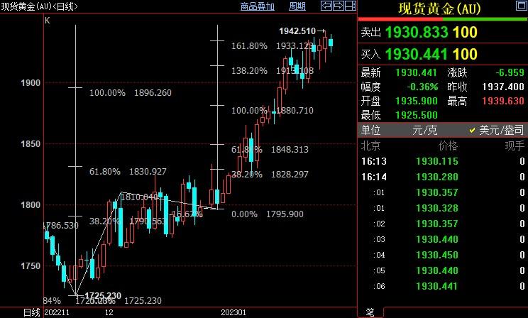 北京时间16:24,现货黄金下跌0.31%至1930.93美元/盎司;COMEX期金主力合约下跌0.19%至1931.8美元/盎司;美元指数上浮0.02%至101.943。