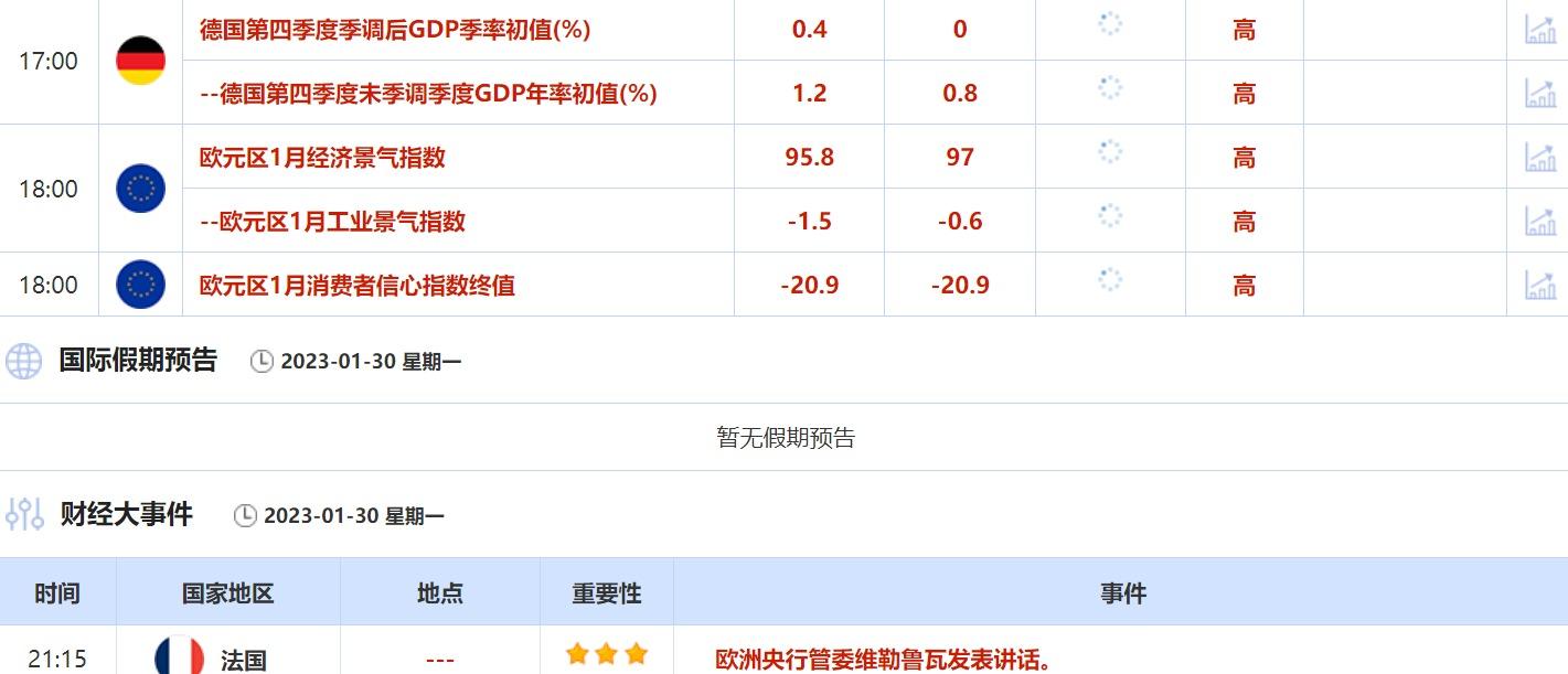 欧元区经济有望避免衰退,欧元兑美元跌幅或受限。法兴银行表示:“最新的经济数据日益证实了我们的观点,即欧元区2022年冬天不会陷入衰退。由于德国第四季度GDP没有下降,我们现在不再预期德国会出现技术性衰退。”