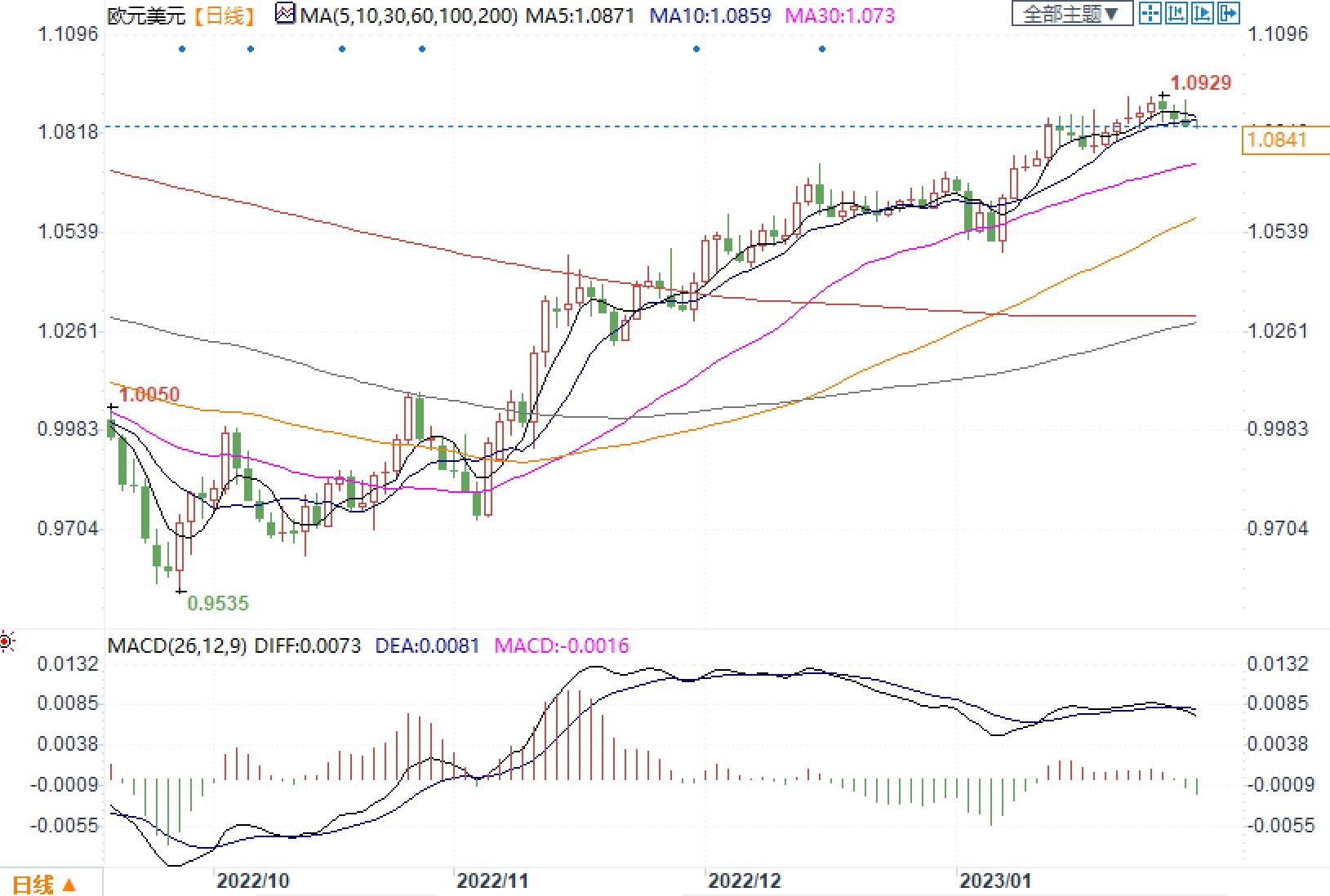 欧元兑美元日线图