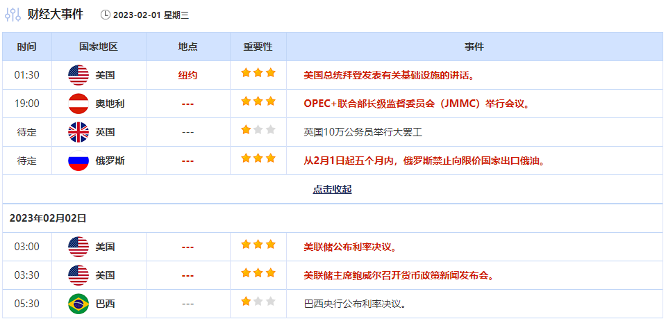 美国去年年底工资增长有所放缓,市场认为这将增加美联储今年春季暂停加息的可能性。凯投宏观高级美国经济学家Andrew称,预计未来几个月工资增长将进一步放缓,以说服美联储在3月后暂停紧缩周期。花旗集团首席经济学家Nathan表示,如果美联储官员认为他们需要进一步削弱劳动力市场,使工资增长在下降几个百分点,那就很有可能出现经济衰退。但RSM US首席经济学家Brusuelas表示,即使美联储真的采取了战略暂停,市场也不能保证这便是利率周期的峰值。总而言之,鲍威尔将在周四解释他的同事们对还有多少次加息的可能性以及何时可能暂停加息的想法,届时他的回答可能点燃或抑制潜在的市场反弹。