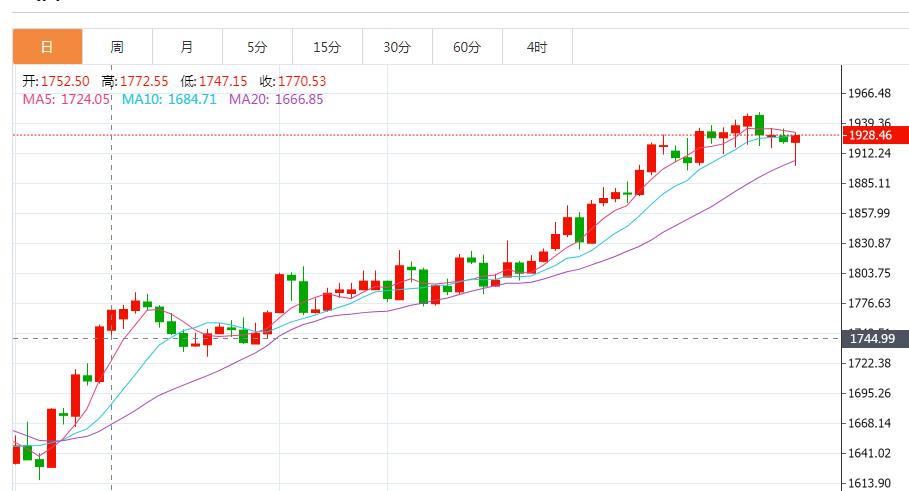 金价周二上涨,月线势将连续第三个月上涨,得益于美元整体走软以及围绕美联储放缓加息的预期。现货金接近日高,上涨0.3%,报每盎司1928.81美元,1月已上涨5.7%。