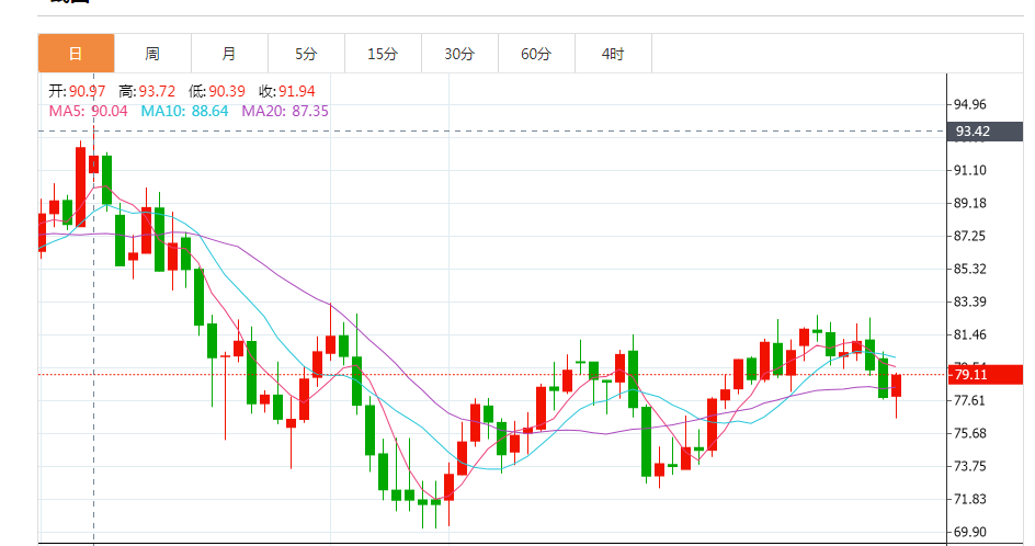 瑞穗银行分析师Robert Yawger表示,到期当日的更多波动性使近月合约承压,交易商结清头寸。近月合约结算价报每桶84.49美元,下跌0.41美元。