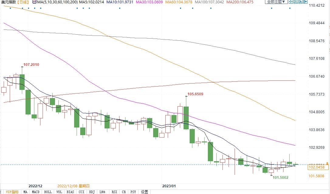 北京时间2月1日15:16,美元指数报102.05