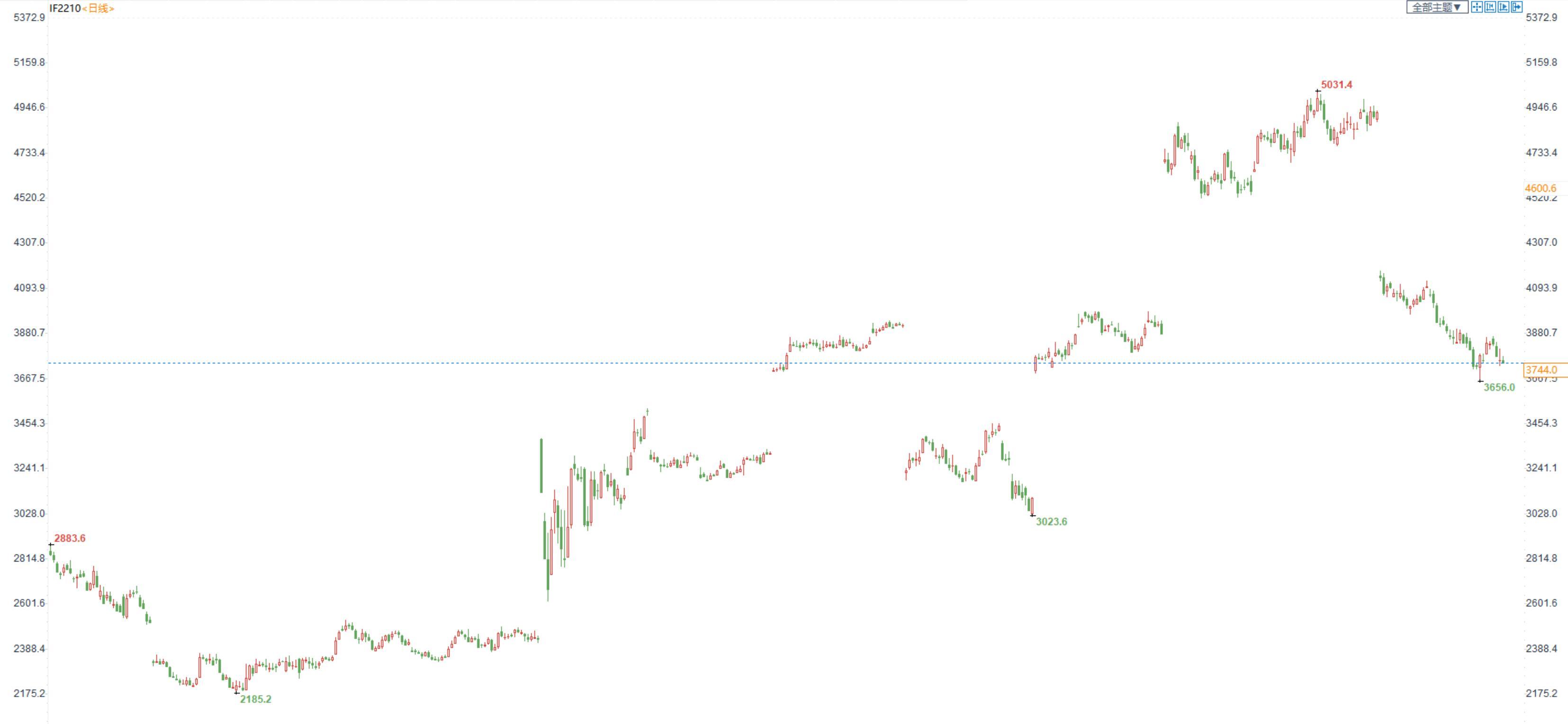 【今日行情】四大期指涨跌互现。IH2211收盘价为2294.4,收跌1.56%;IF2211收盘价为3505.4,收跌1.27%;IC2211收盘价为5805,收涨0.23%;IM2211收盘价为6286.6,收涨0.57%。今日市场低开高走,午后走弱,IC和IM表现较为抗跌,均小幅收涨,计算机板块涨逾4%,地产和煤炭板块均跌超3%。市场成交额降至8826.80亿元。