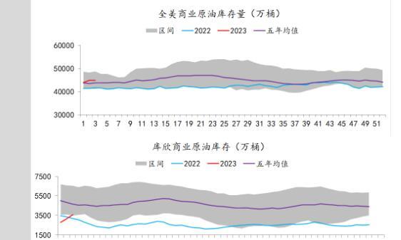 供应端:据美国能源信息署最新数据显示,截止2023年1月27日当周,包括战略储备在内的美国原油库存总量82426.7万桶,比前一周上升414万桶;美国商业原油库存45268.8万桶,比前一周上升414万桶;战略原油库存量37158万桶,与上期持平;美国汽油库存总量23459.8万桶,比前一周上升257.6万桶。商业原油库存比去年同期高9.07%,比过去五年同期高3.46%;汽油库存比去年同期低6.17%,比过去五年同期低约6.79%;馏分油库存比去年同期低4.20%,比过去五年同期低17.13%。