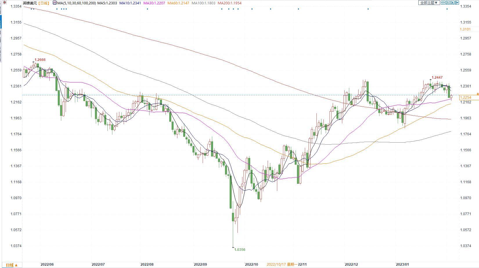 疲弱的英国经济前景给英镑带来压力。本周,国际货币基金组织对英国的经济做出了相对负面的预测,预计其国内生产总值将在2023年收缩0.6%。英格兰银行也认为该国经济正在走向衰退,但可能这次衰退很“轻微”并且完全不用过于担心。