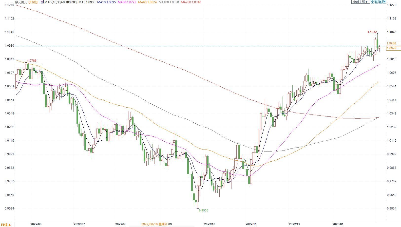 美联储主席鲍威尔发表“我们可以宣布通货紧缩过程已经开始”的言论,并称,如果通胀下降得更快,有必要在2023年底降息,这吸引大量美元空头入场。