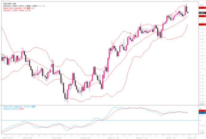 欧洲央行周四将利率上调0.5个百分点至2.5%,并明确表示至少在下个月还有一次同等幅度的加息,重申将坚持与高通胀作斗争。同时欧洲央行总裁拉加德在新闻发布会上表示加息还没有完成,她重申了该行的口号,即将战斗“进行到底”,直到通胀率降至约2%目标。该消息对欧元是利好,但适逢周四美国公布上周初请失业金人数降至九个月最低,彰显劳动力市场韧性,美元指数大幅回升,受此影响,欧元承压,当天开盘1.0988,收盘1.0910。