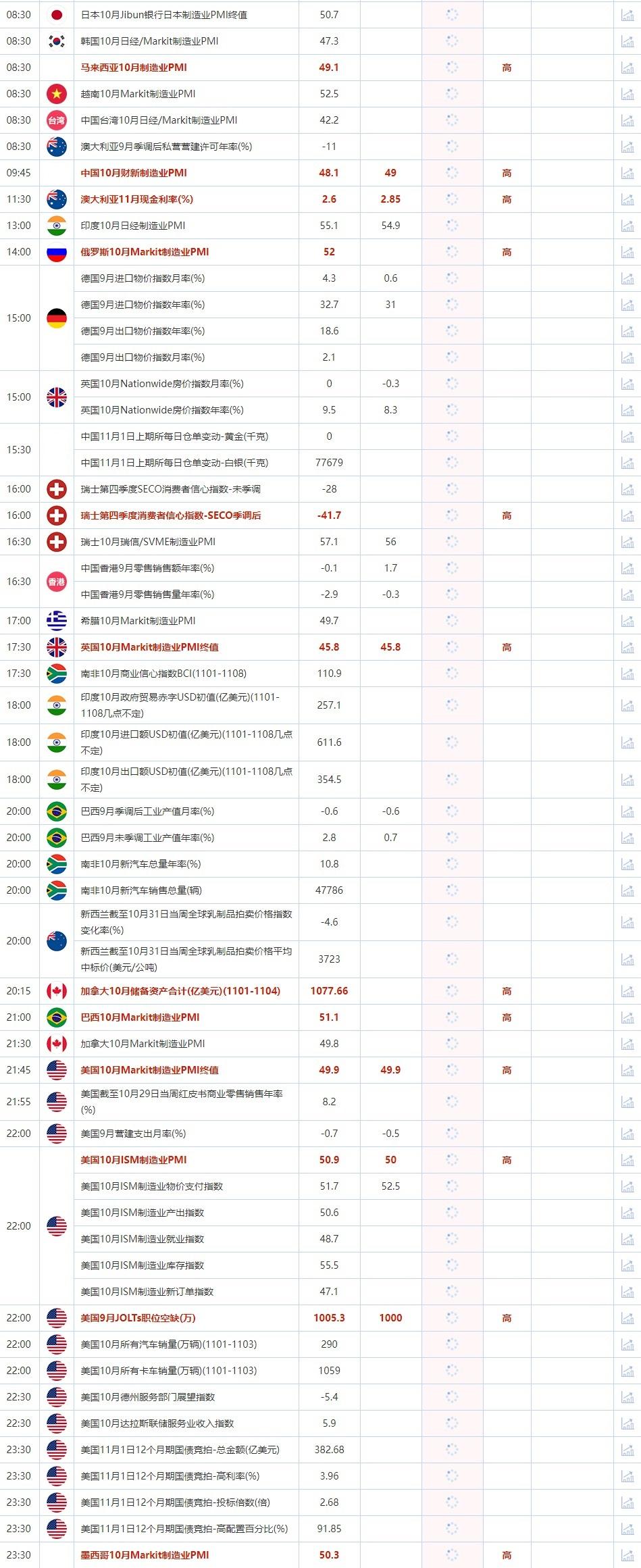 后续及时更新的财历数据请关注:【汇通网11月1日财经日历】
