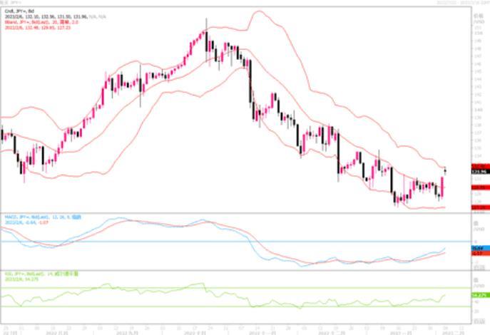 上周五(2月3日)美元兑日元在强劲非农数据的刺激下大幅走升1.94%,高收于131.18水平,截至周一亚洲早盘美元兑日元报价在132.08附近。现在走势明显偏向上行,这主要是受美联储和日本央行的预期影响所致。有报导称,偏鸽派的雨宫正佳有望出任日本央行总裁,这则消息无疑将加重日元重新走软的压力。日线图上,美元兑日元冲破布林带中轨,MACD、RSI等技术指标均呈上扬倾向,料美元兑日元将展开进一步反弹的走势。上方强阻力留意135.00水平,突破后进一步阻力在138.00,随之在140.00。