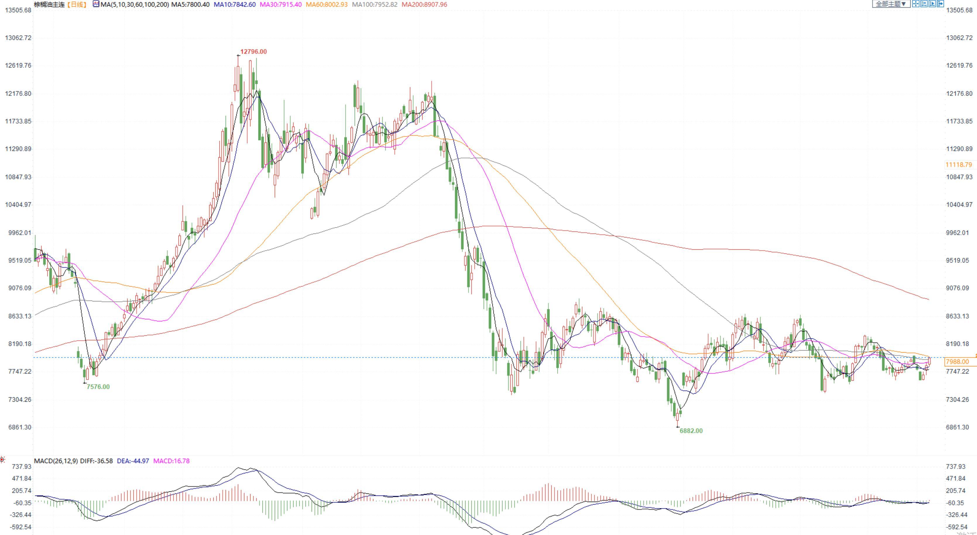 棕榈油2305合约日内涨2.15%,收盘7988元/吨,广州市场棕榈油7870元/吨。