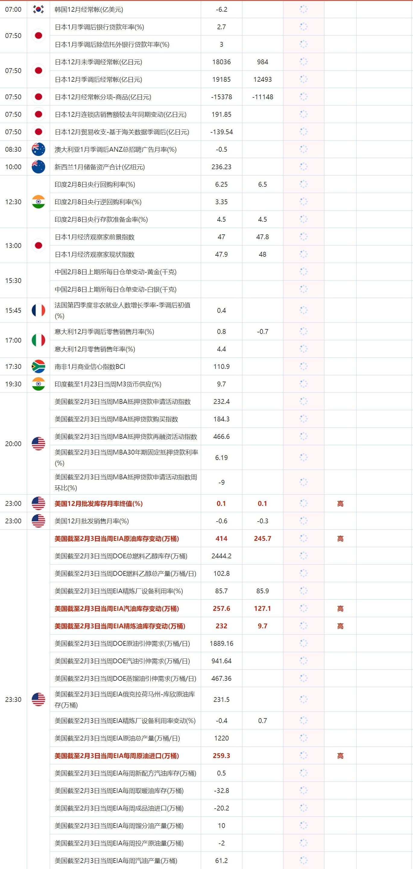 2月8日重点数据和大事件前瞻