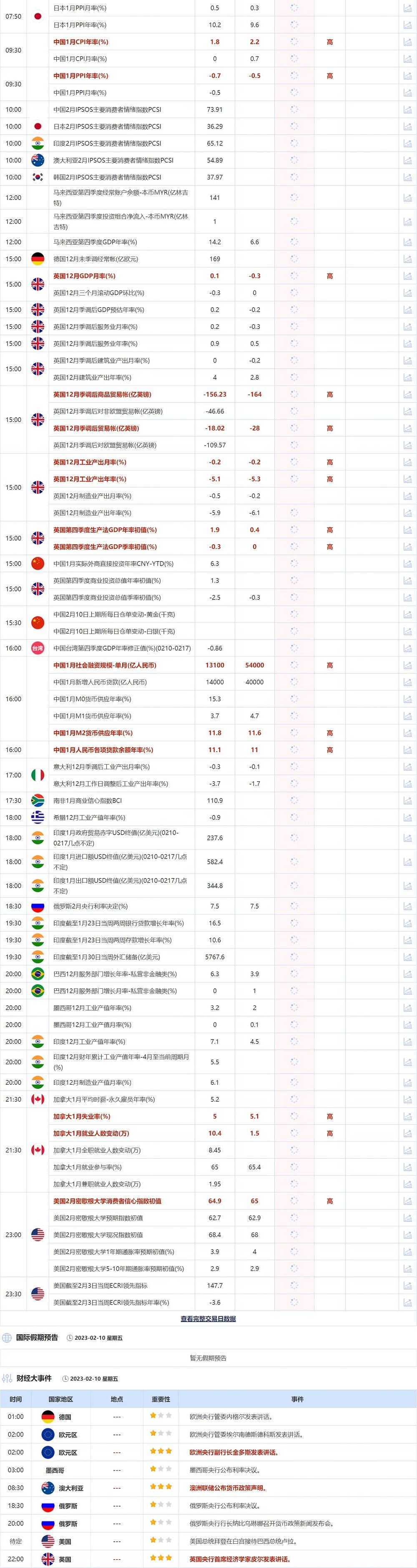 2月10日重点数据和大事件前瞻